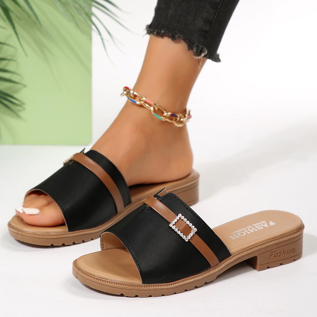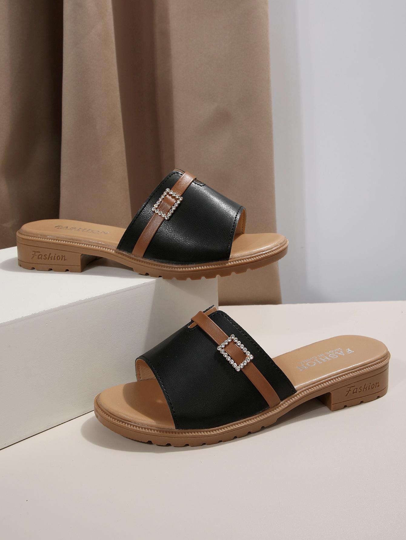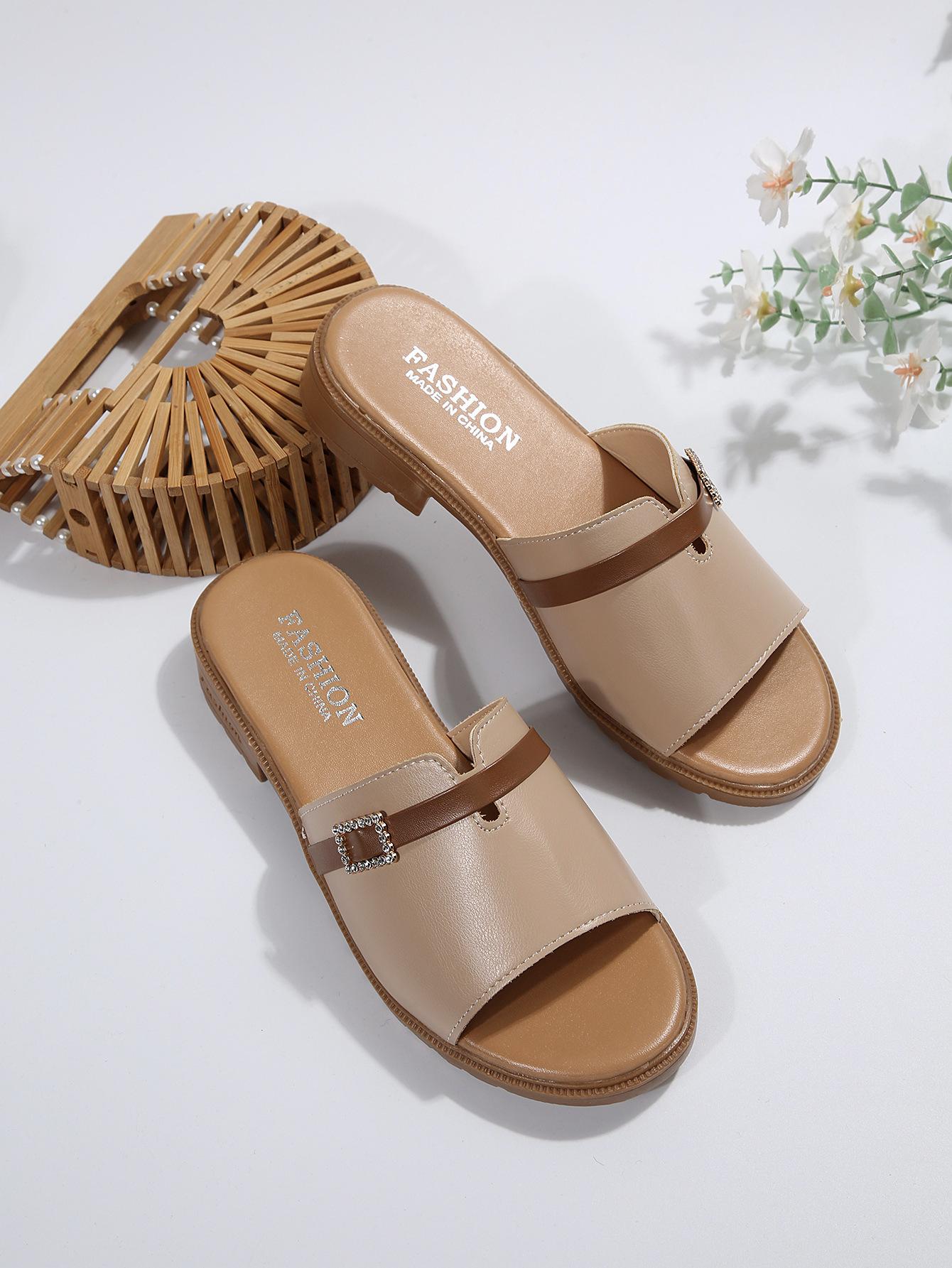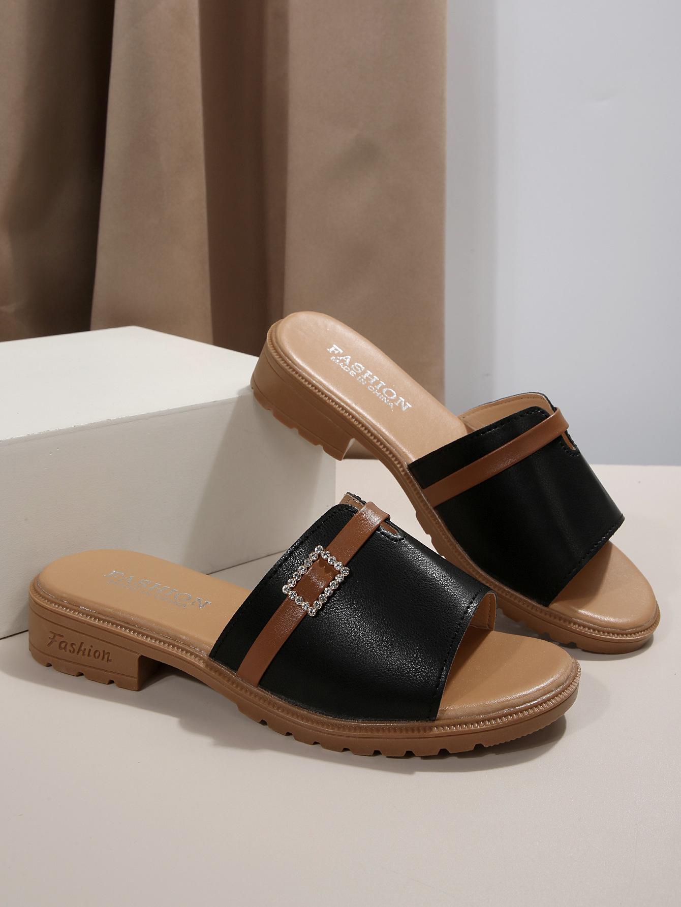 Sandálias de Verão Femininas com Plataforma, Bico Aberto e Salto Grosso, Sandálias Slip-On de Salto Alto com Bico Aberto