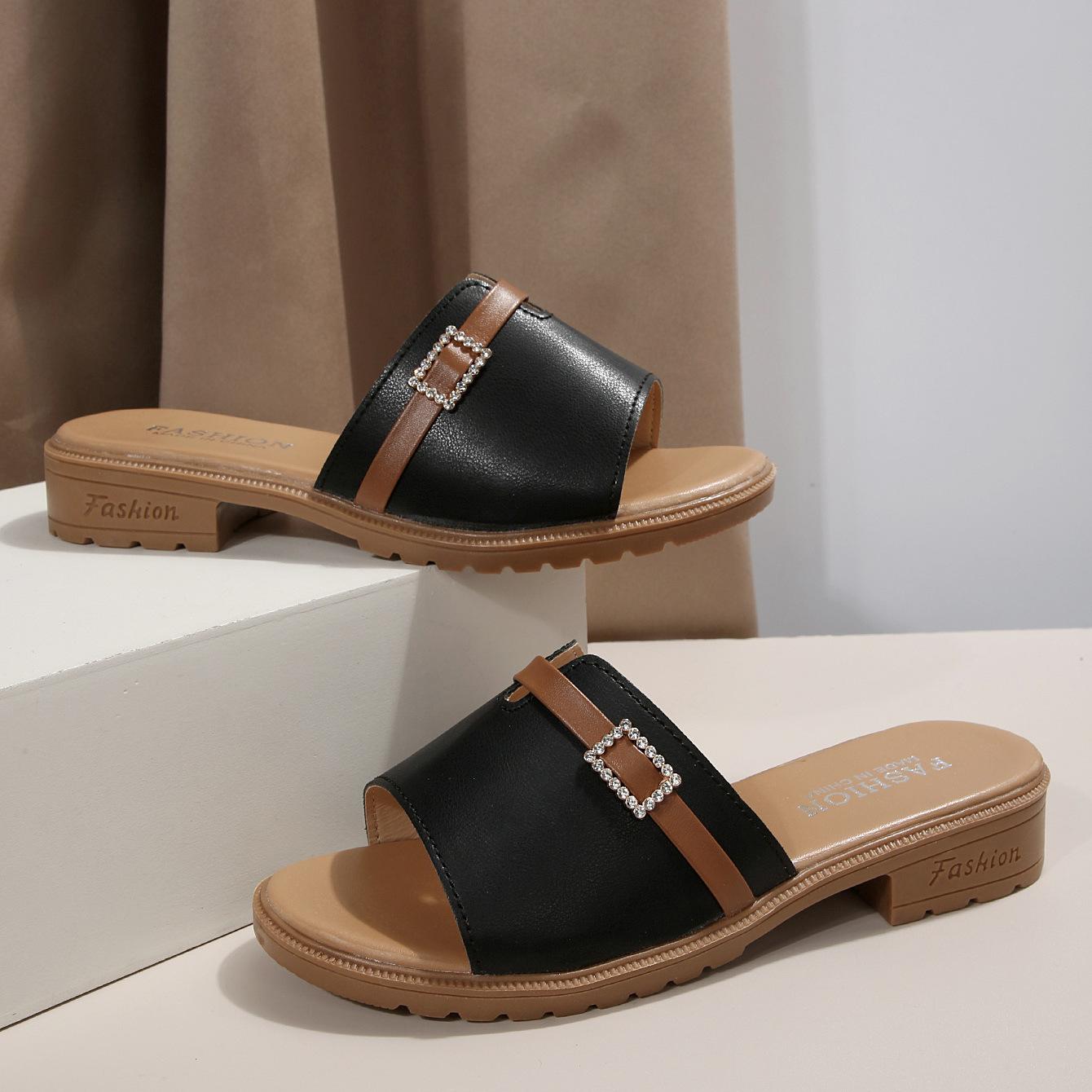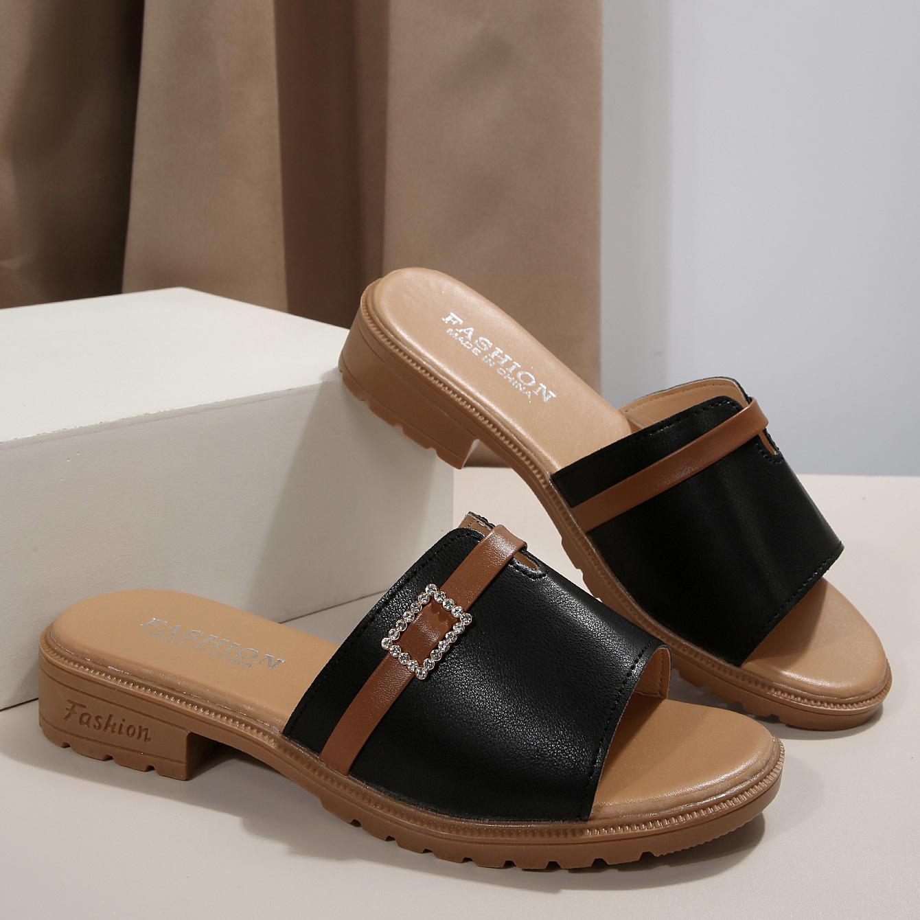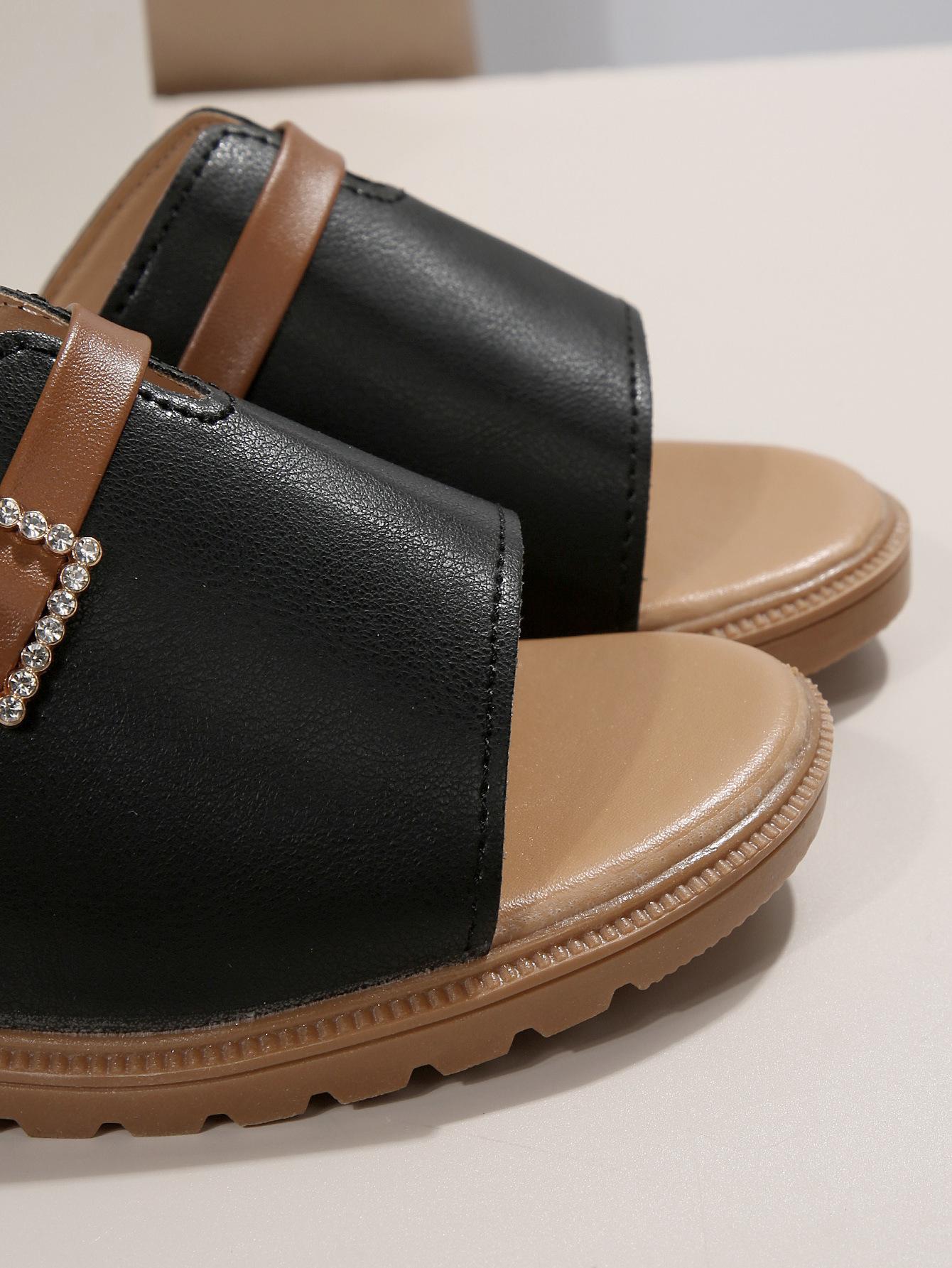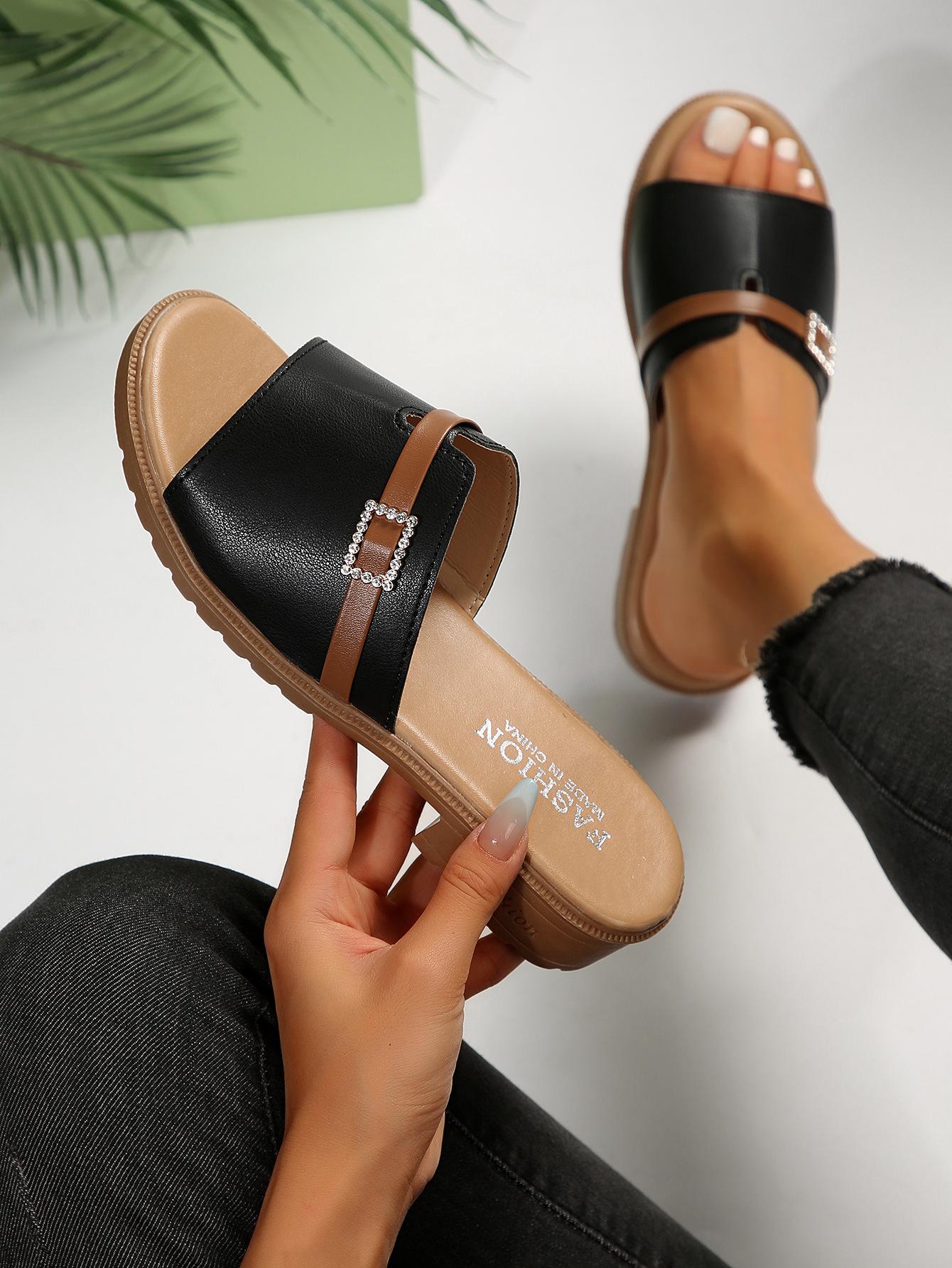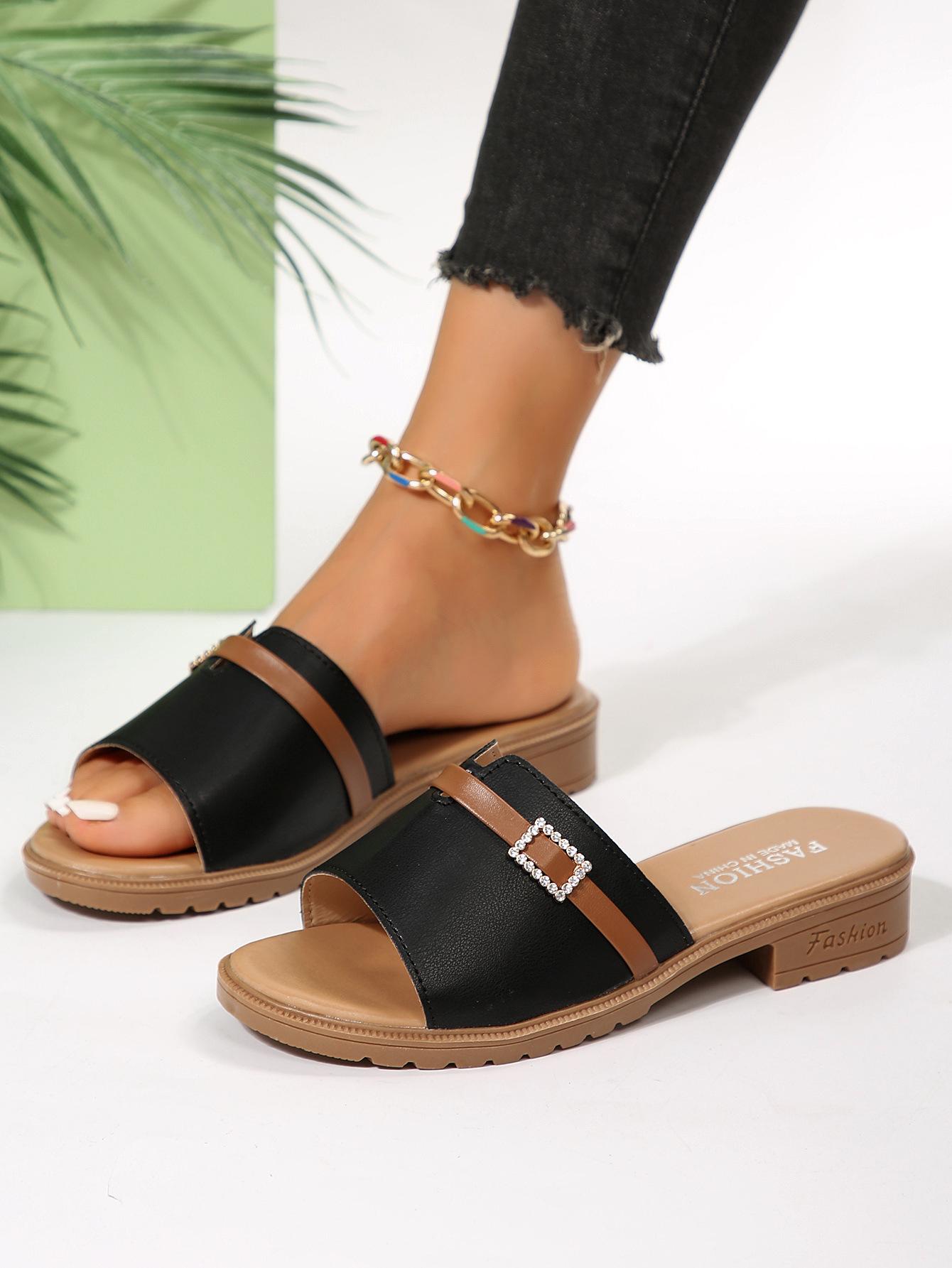 Sandálias de Verão Femininas com Plataforma, Bico Aberto e Salto Grosso, Sandálias Slip-On de Salto Alto com Bico Aberto
