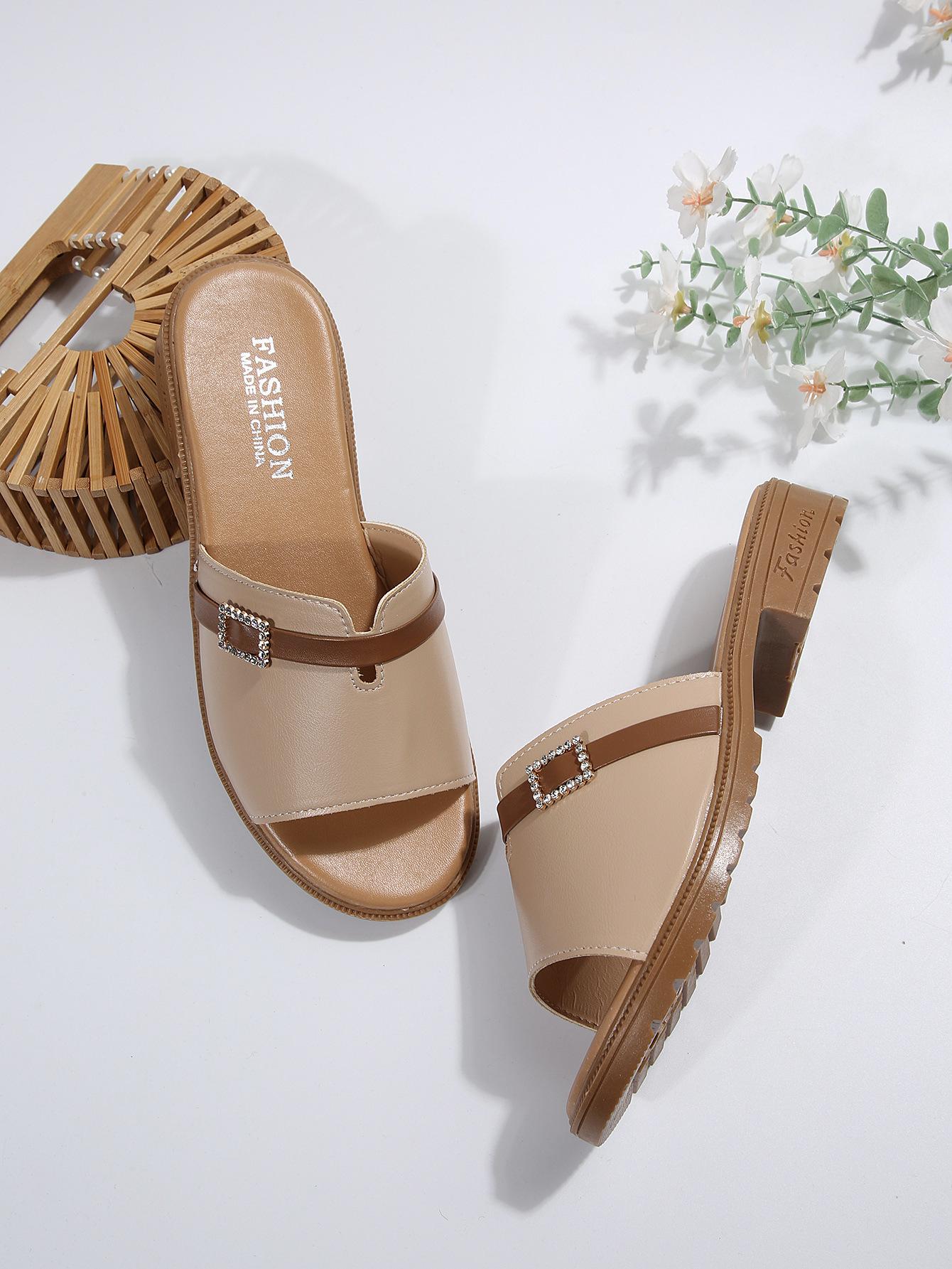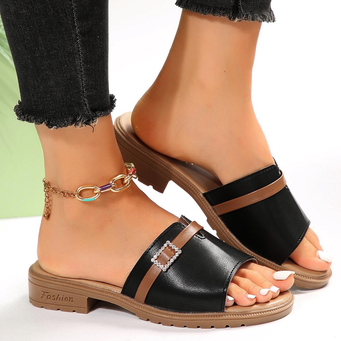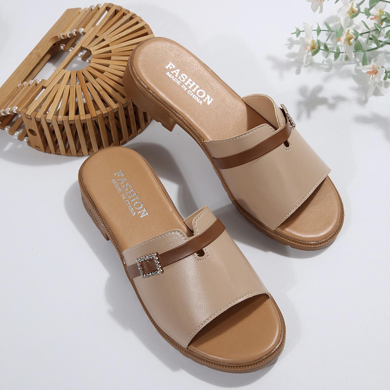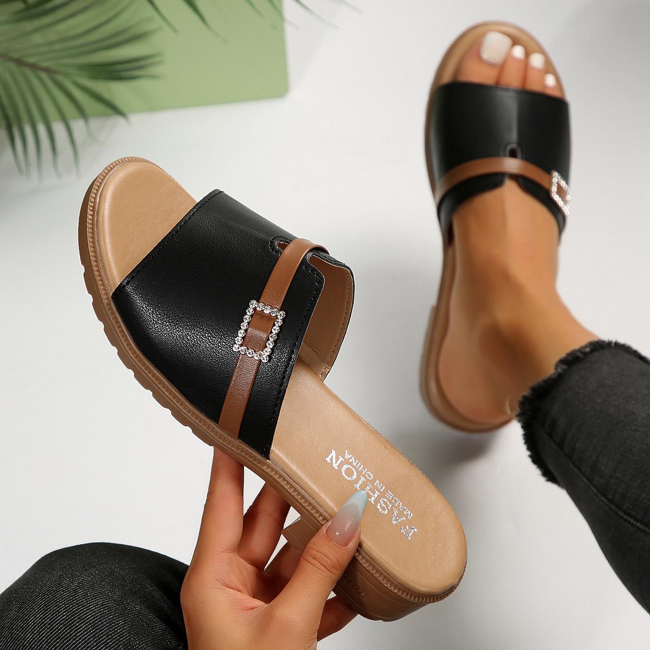 Sandálias de Verão Femininas com Plataforma, Bico Aberto e Salto Grosso, Sandálias Slip-On de Salto Alto com Bico Aberto