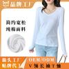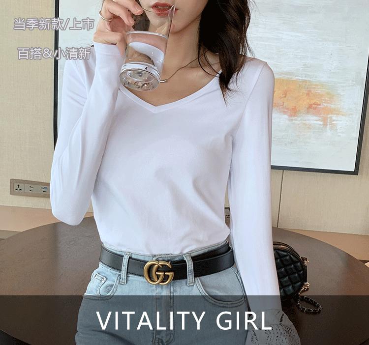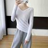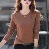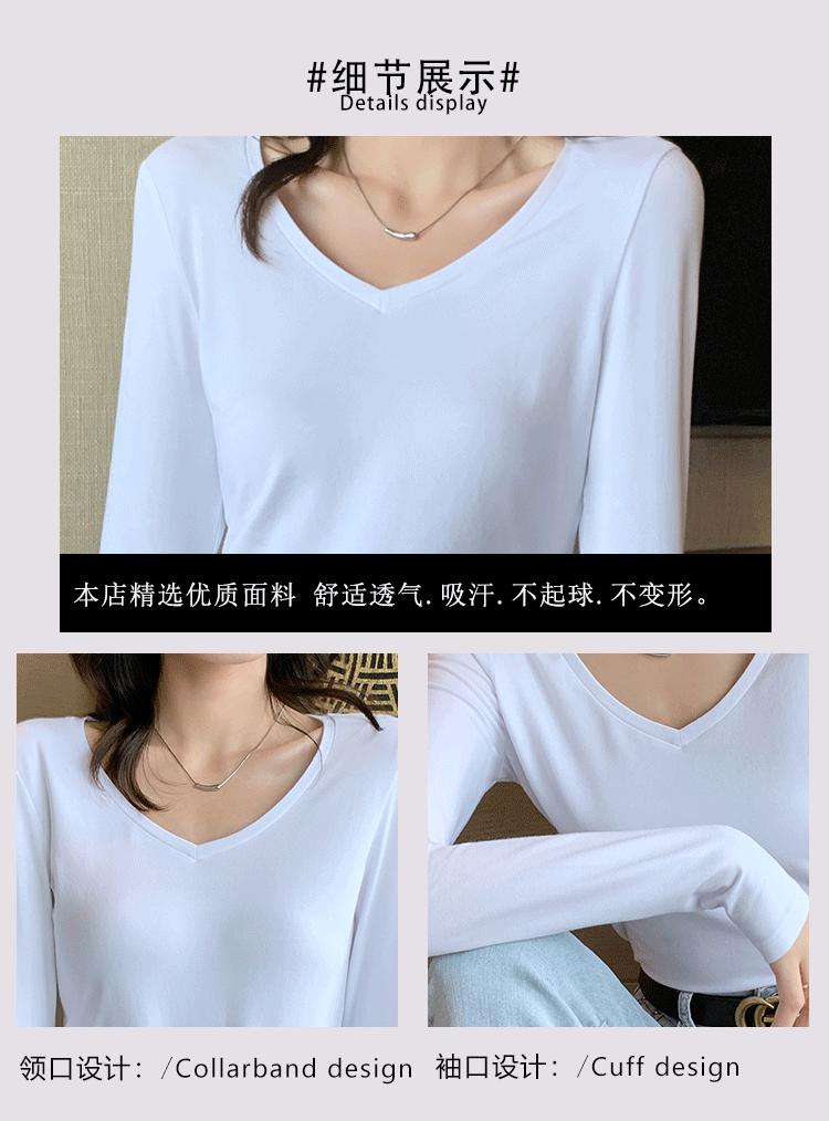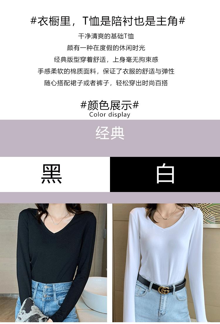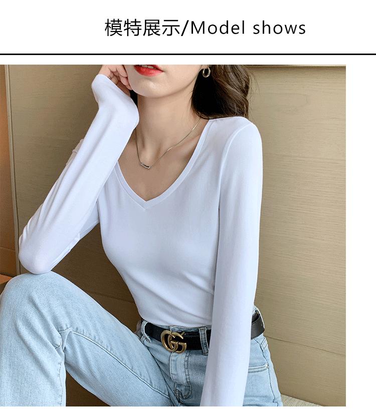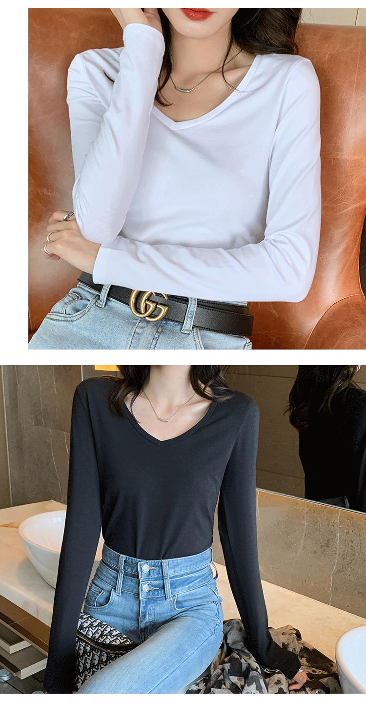 Camiseta Básica Slim de Algodão Puro Estilo Coreano para Atacado Feminina Manga Longa Justa Decote V 2025 Nova Primavera & Outono Roupa Íntima