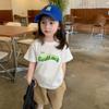 Camiseta infantil de manga curta, estilo coreano, de algodão puro, estampa de letras, tamanho médio a grande, para verão, infantil, branca, absorvente de suor, para meninas, da moda