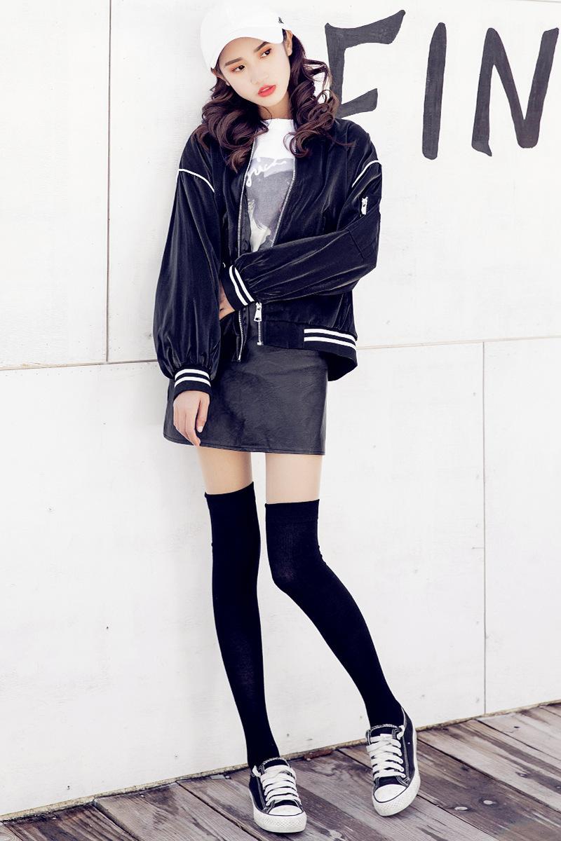 Meias de joelho estilo universitário japonês puro preto longo alto meias de algodão JK uniforme meias femininas moldando estudantes empilhar meias atacado