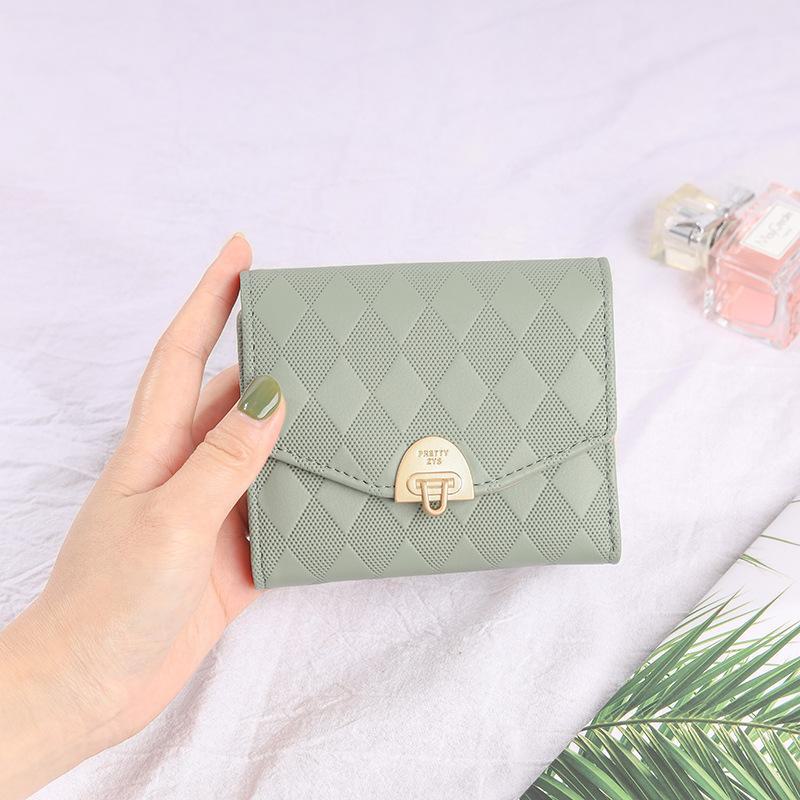 | Carteira feminina curta retrô europeia e americana PU fosca fivela folha de metal zíper dobrável multifuncional porta-moedas estudantil |