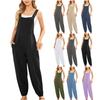 Macacão feminino de linho e algodão europeu e americano, cor sólida, bolso na cintura, calças suspensórias, leggings casuais com botões da Amazon