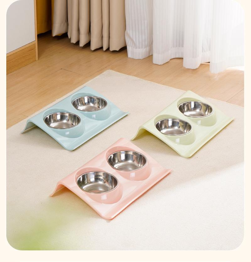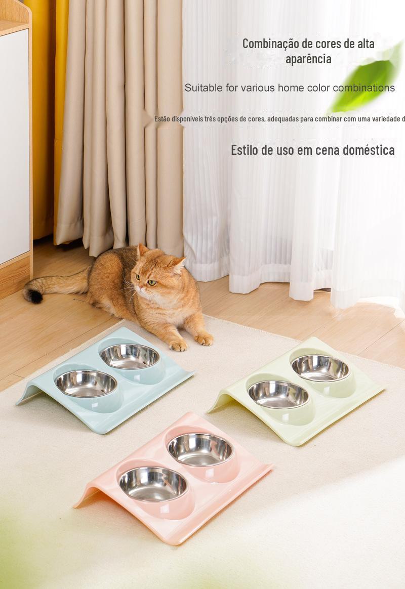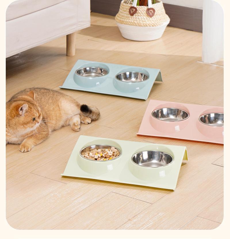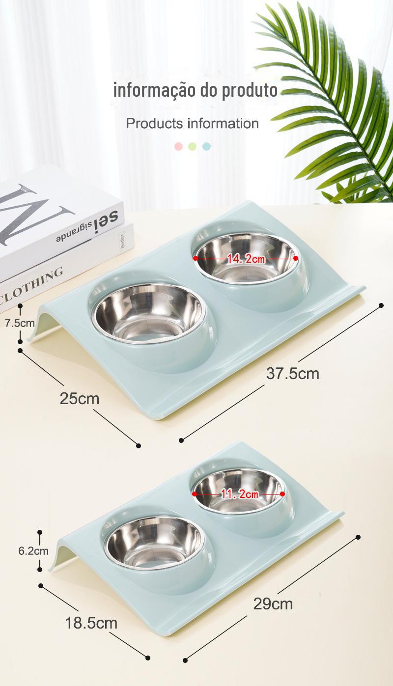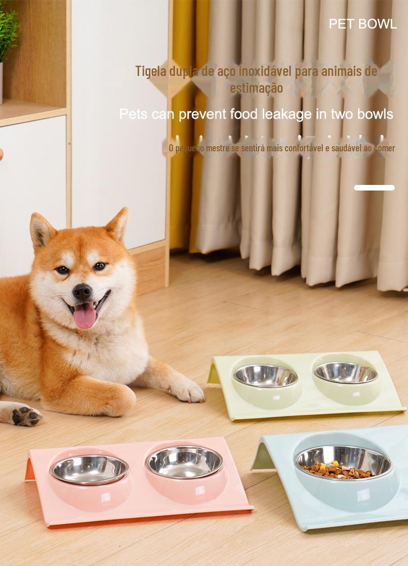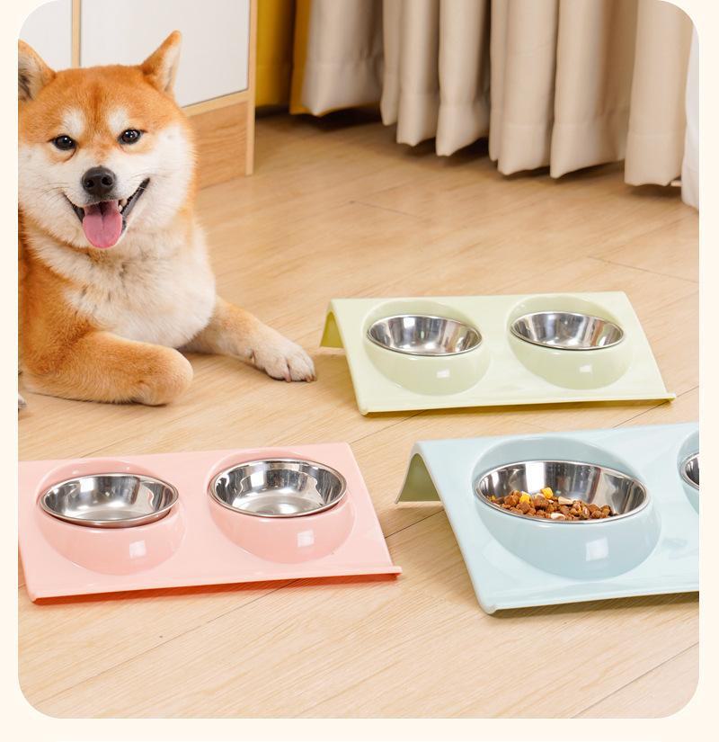 Fábrica direta tigela de cachorro de estimação de aço inoxidável inclinação dupla tigela à prova de respingos antiderrapante alimentador de gato bacia de comida de cachorro