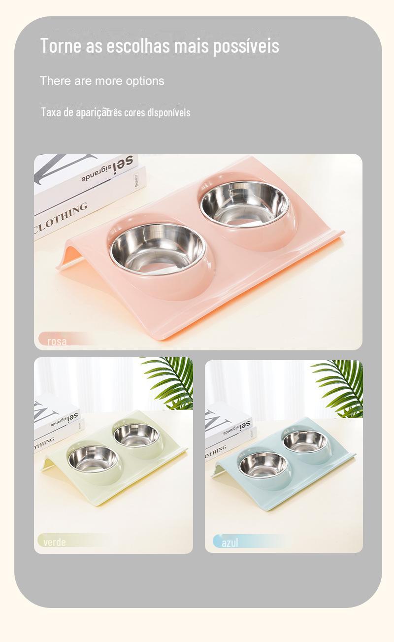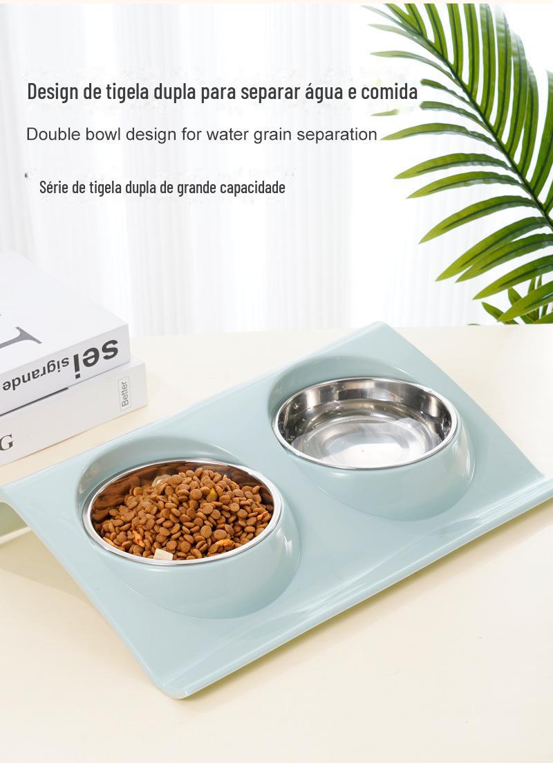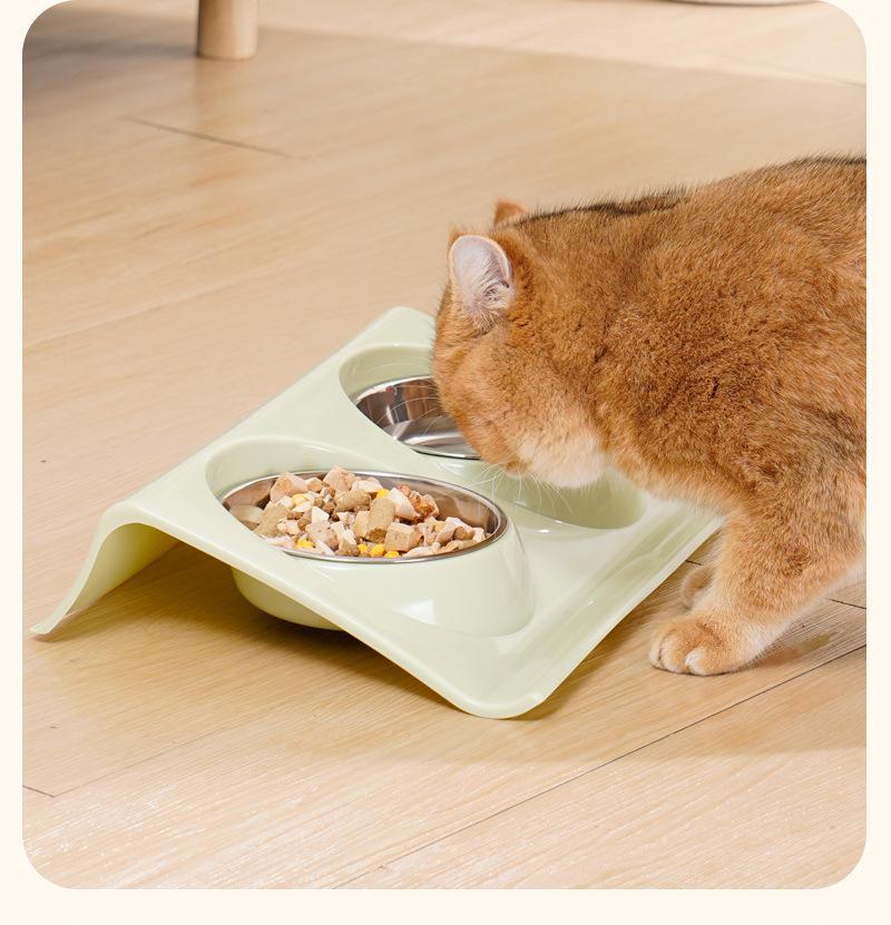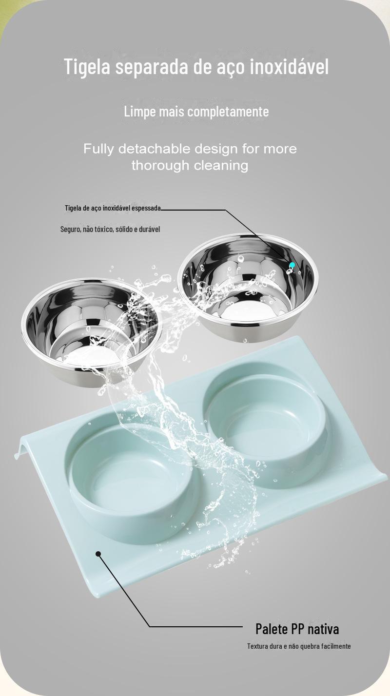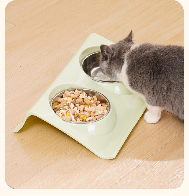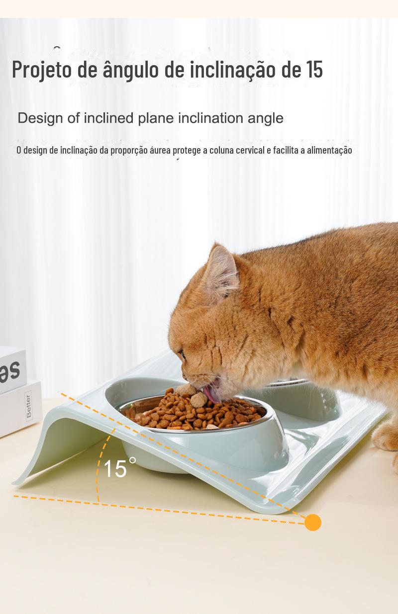 Fábrica direta tigela de cachorro de estimação de aço inoxidável inclinação dupla tigela à prova de respingos antiderrapante alimentador de gato bacia de comida de cachorro