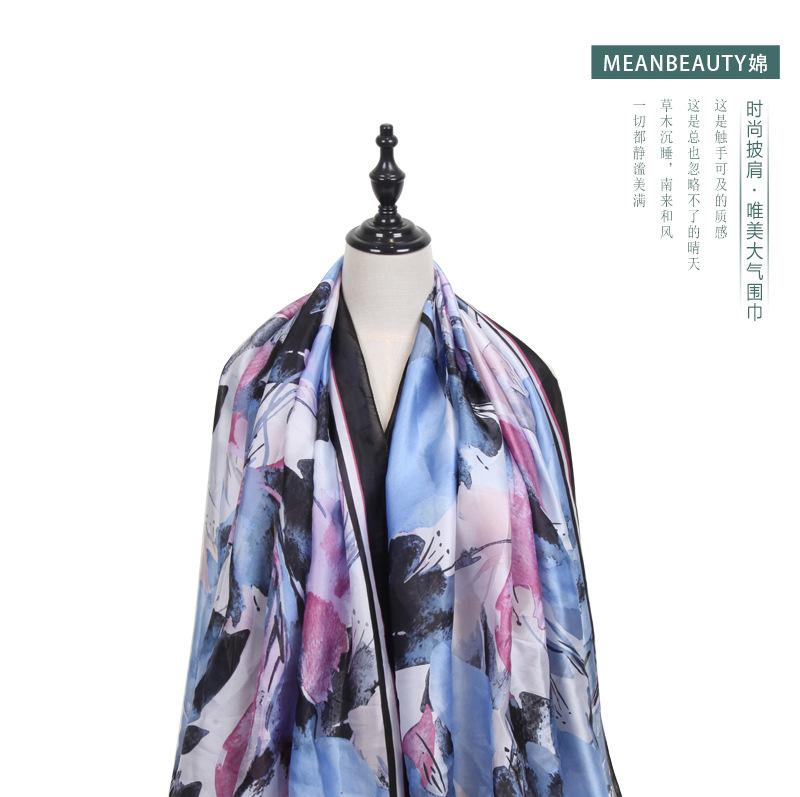 Cross-border Nova moda xaile cachecol feminino dupla face estampado lenço de seda ao ar livre protetor solar xaile