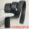 3.5 Cinto com Padrão de Lichia, Couro Bovino de Primeira Camada, Fivela Automática, Ranhura Dentada Longa, Costura Dupla, Couro Genuíno Liso