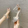 Sapatos elegantes de salto alto com bico redondo, sandálias para banquete, boate, moda feminina, salto agulha, socialite, verão, novo, todos combinam, estilo pequeno