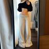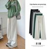Calça elástica cintura reta de pernas largas, calça feminina de outono solta drapeada estilo preguiçoso calças casuais calças all-match calças de caminhada