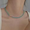 Colar de Contas de Turquesa Sintética e Prata para Mulheres, Verão Versátil de Alta Qualidade, Gargantilha Choker de Contas para Clavícula