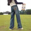 Meninas Internet Popular Jeans 2024 Primavera e Outono Estilo Ocidental Infantil Médio e Grande Calças Casuais Infantis Bordadas Bolso Traseiro Calças Retas