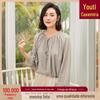 Protetor solar de verão novo Tencel elegante camisa pequena feminina solto plissado pescoço redondo renda-up casual lanterna manga top shirt