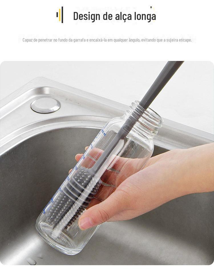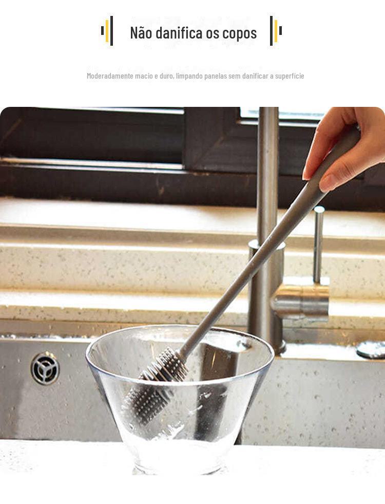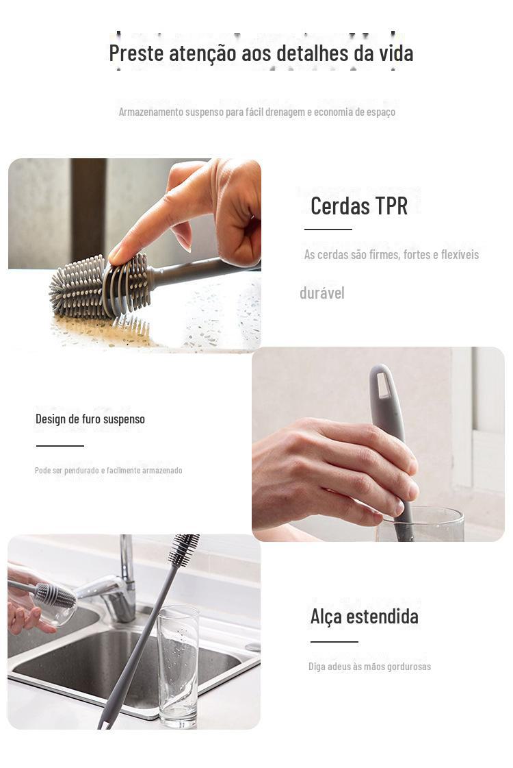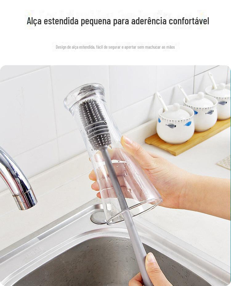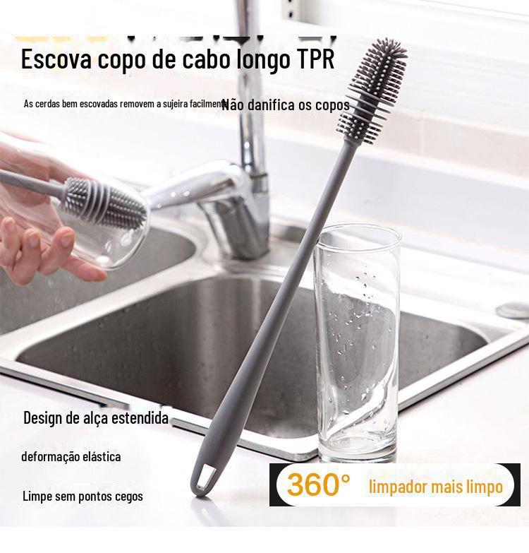 Escova de copo super longa alça garrafa escova 360 graus rotativo água de limpeza copo de lavagem de leite garrafa de vidro escova de silicone artefato doméstico