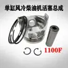 Acessórios para gerador diesel monocilíndrico refrigerado a ar, anel de pistão de aração 1100F, pino de pistão, anel de retenção, conjunto de quatro peças