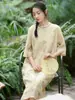 Vestido feminino de verão, novo, novo, chinês, cheongsam, estilo chinês, algodão e linho, roupas vintage de chá de alta qualidade, atacado