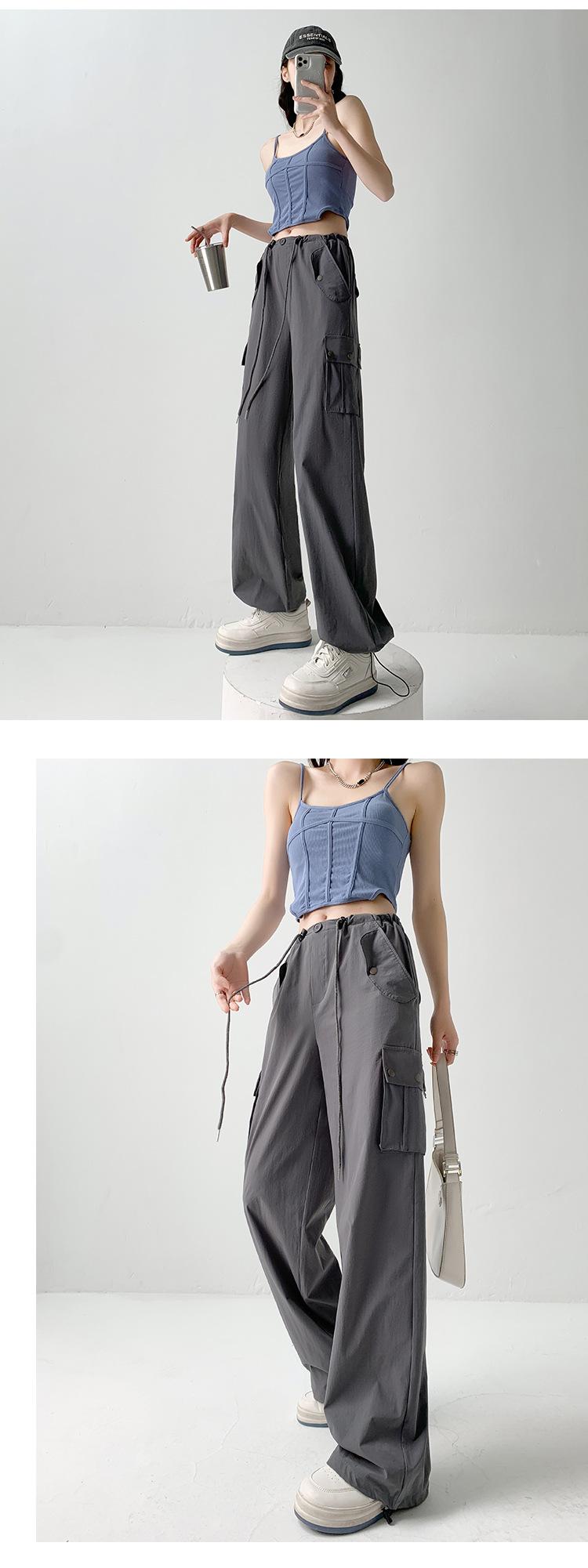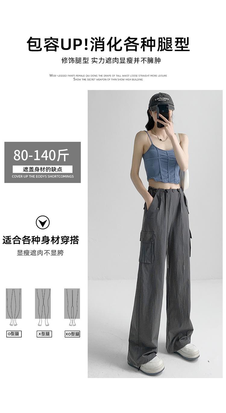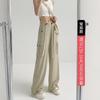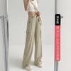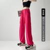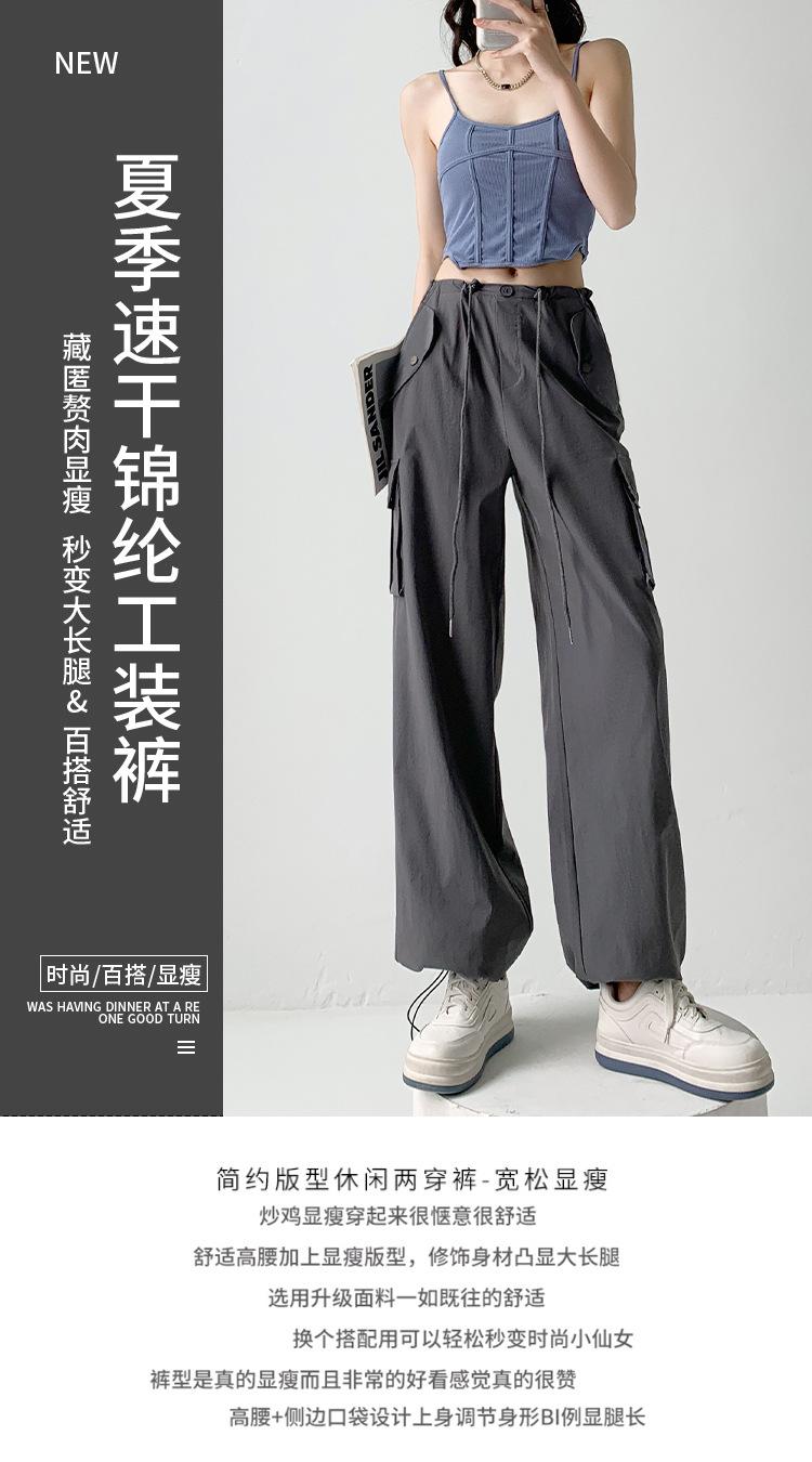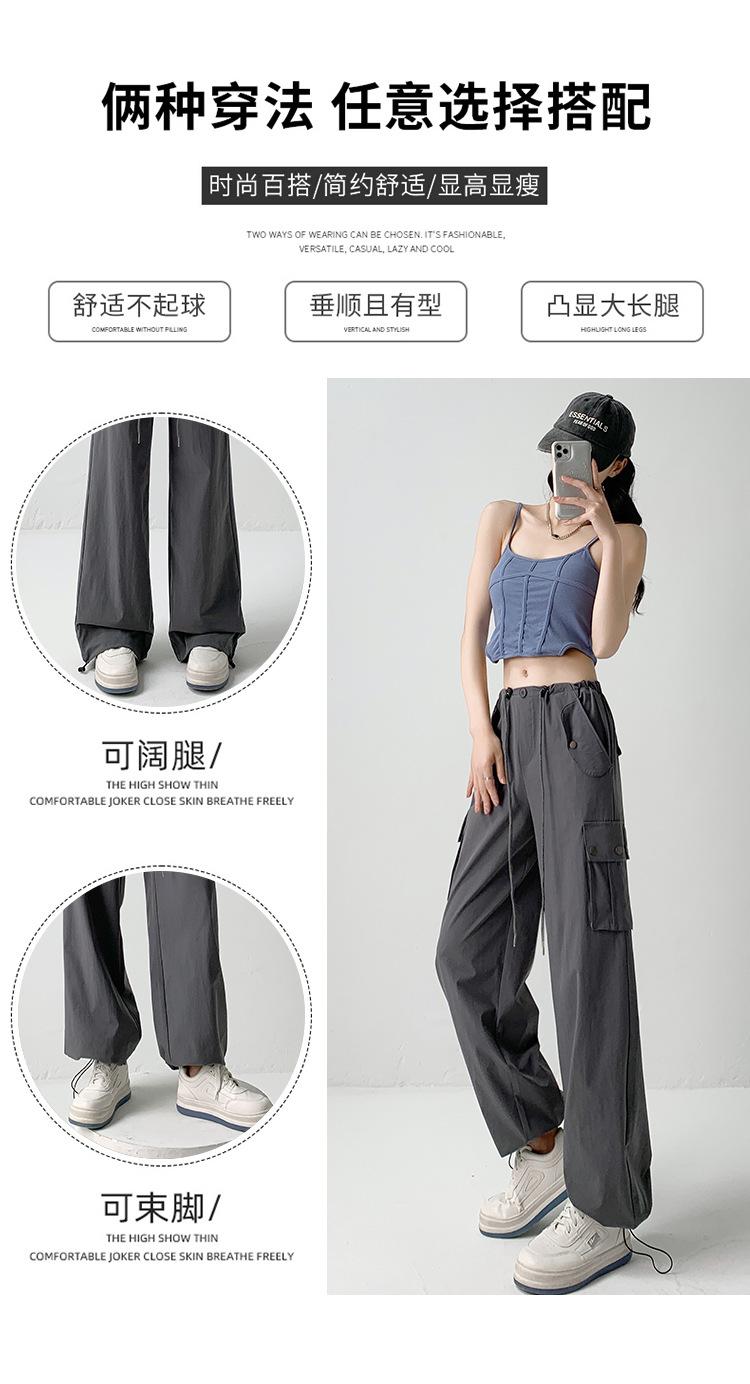 Calças Cargo Estilo Retrô Calças Femininas Verão Calças Femininas 2025 Novas Soltas Pernas Largas Calças de Moletom Cintura Alta Secagem Rápida Calças Esportivas