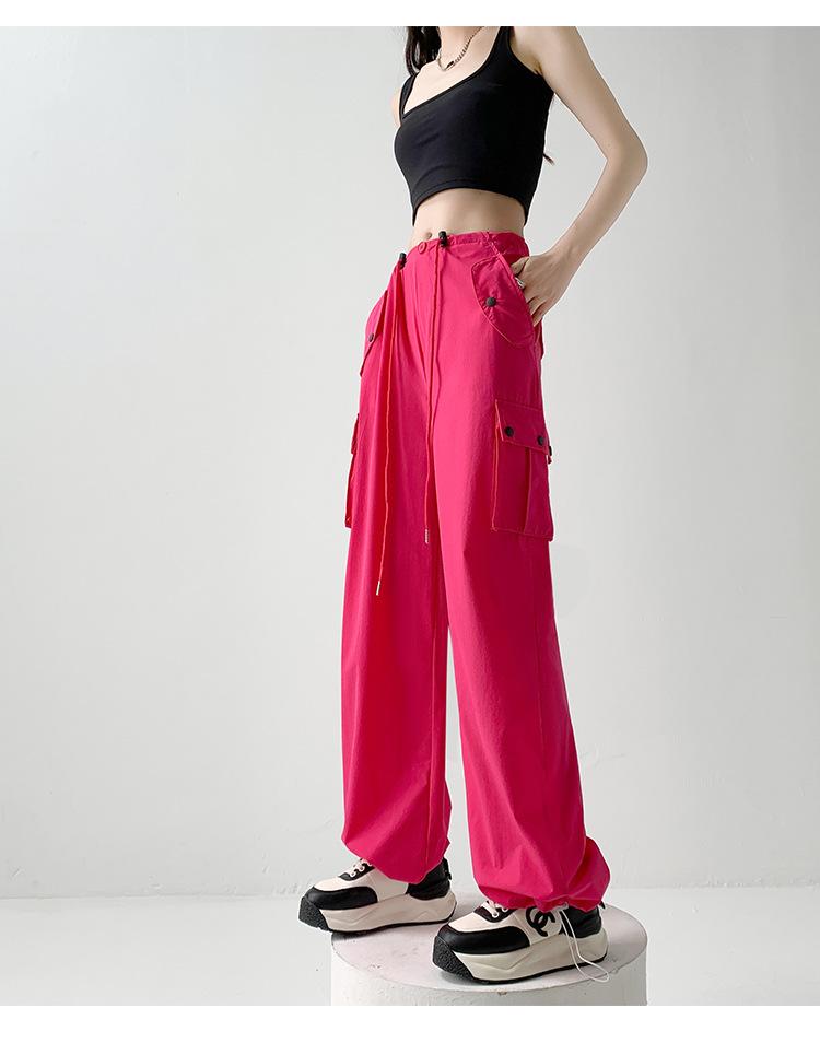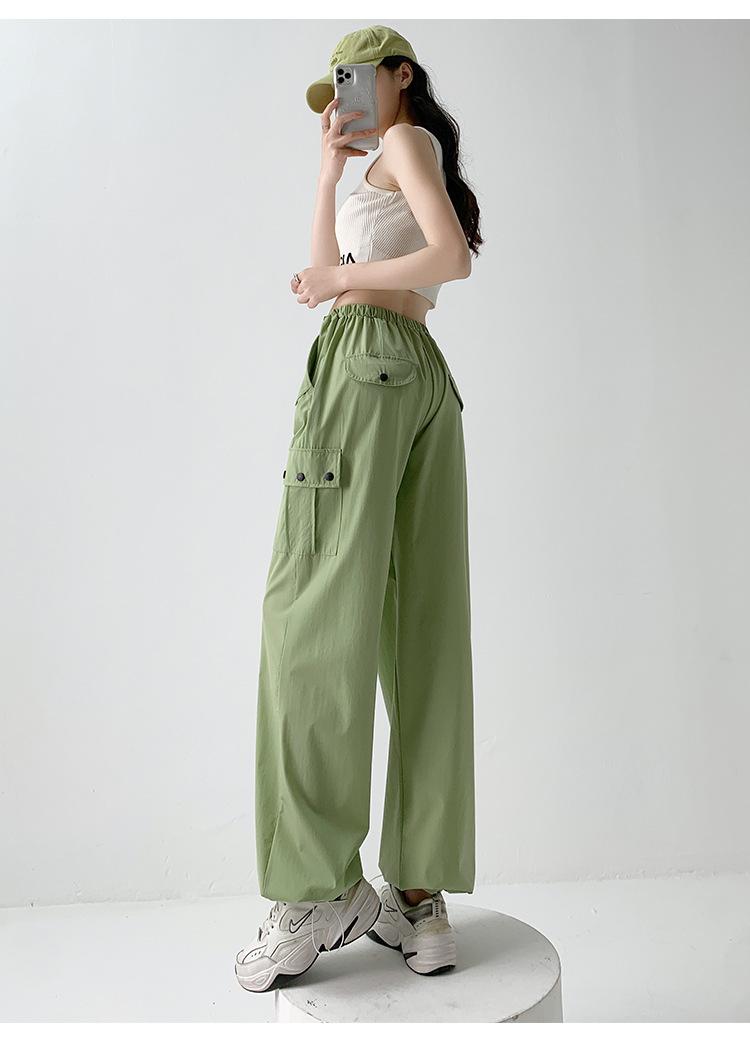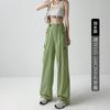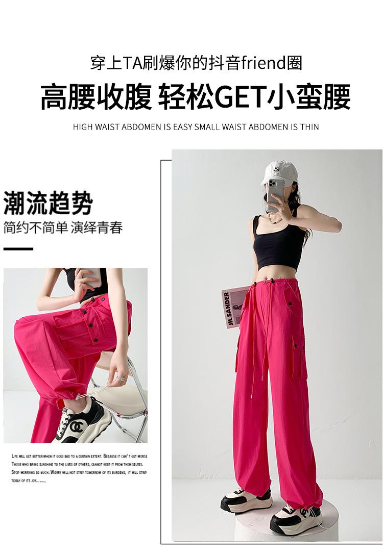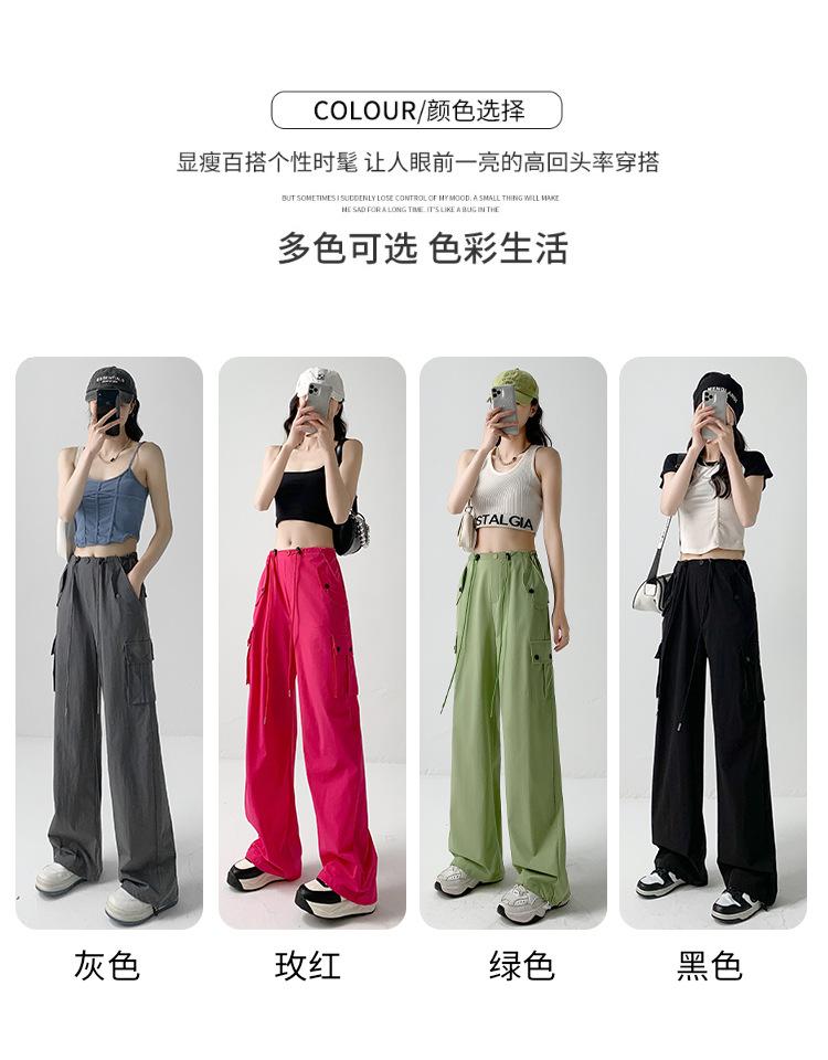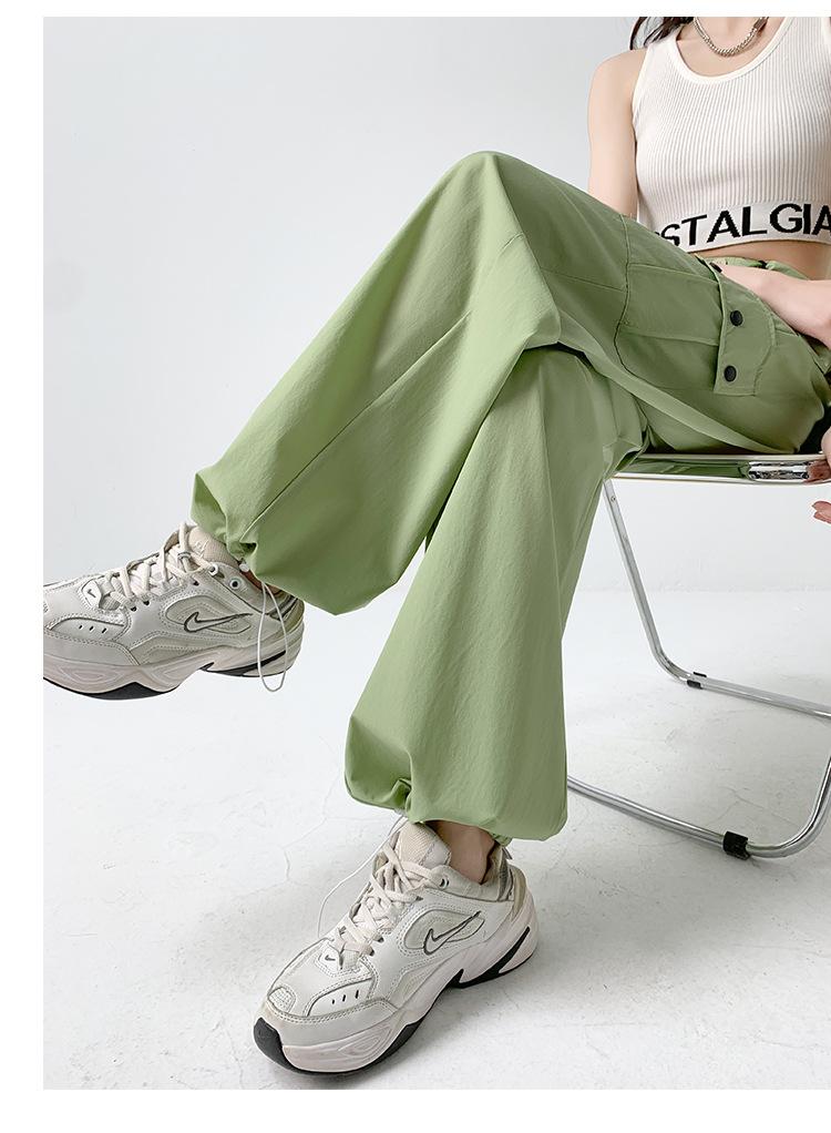 Calças Cargo Estilo Retrô Calças Femininas Verão Calças Femininas 2025 Novas Soltas Pernas Largas Calças de Moletom Cintura Alta Secagem Rápida Calças Esportivas