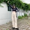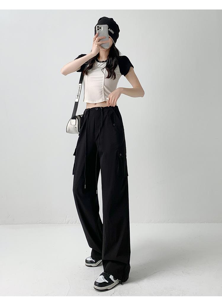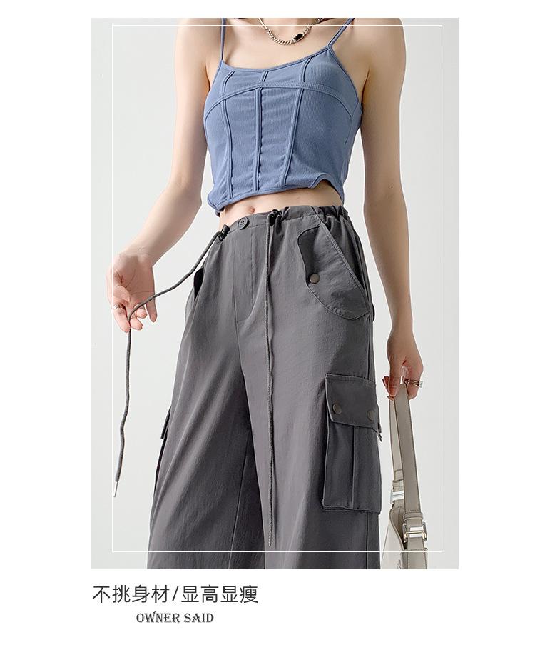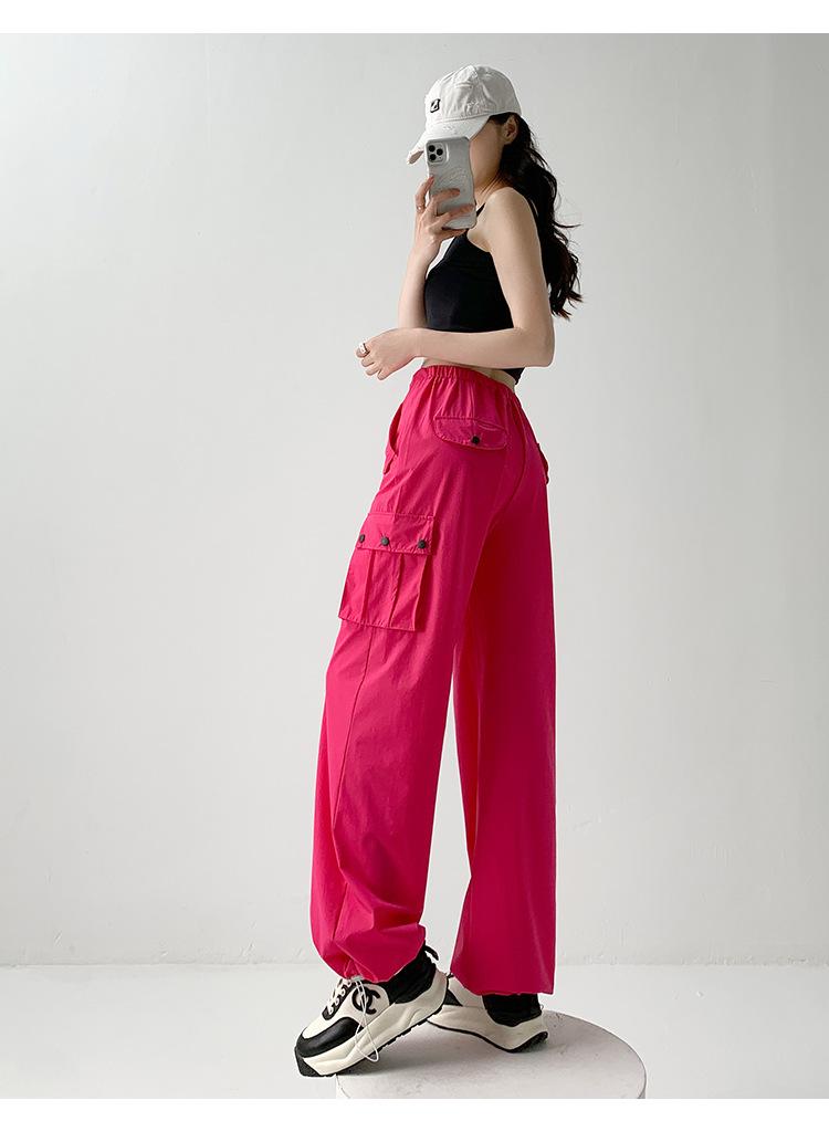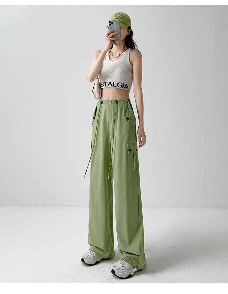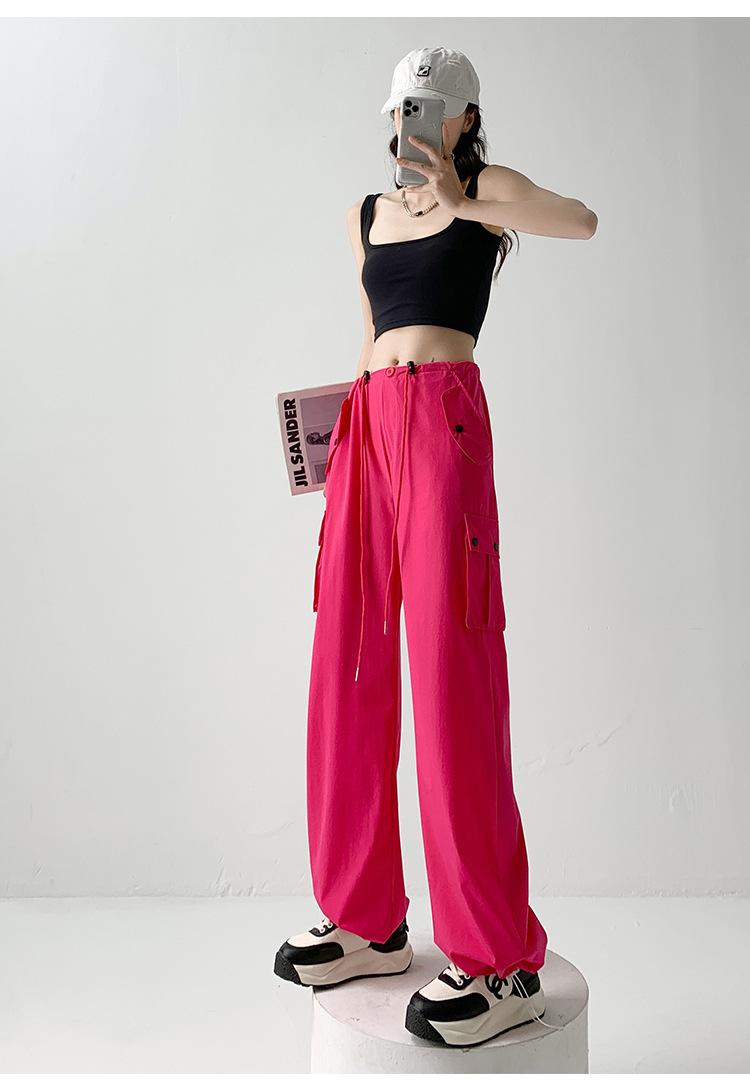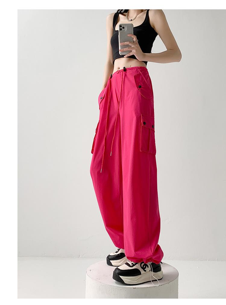 Calças Cargo Estilo Retrô Calças Femininas Verão Calças Femininas 2025 Novas Soltas Pernas Largas Calças de Moletom Cintura Alta Secagem Rápida Calças Esportivas