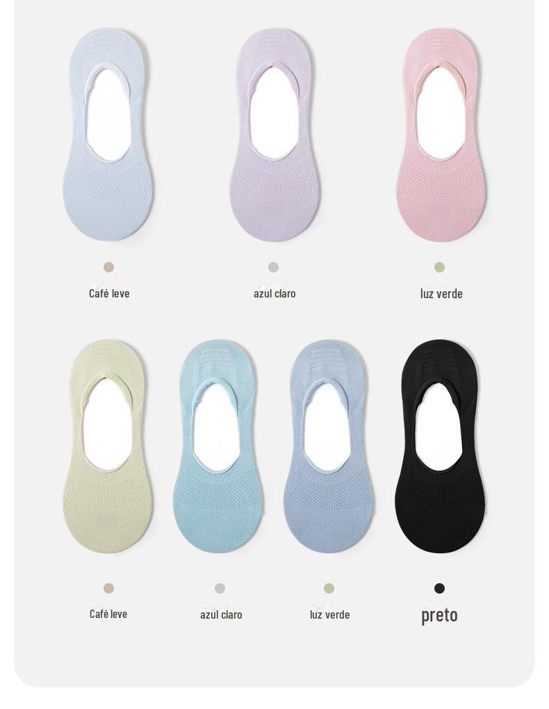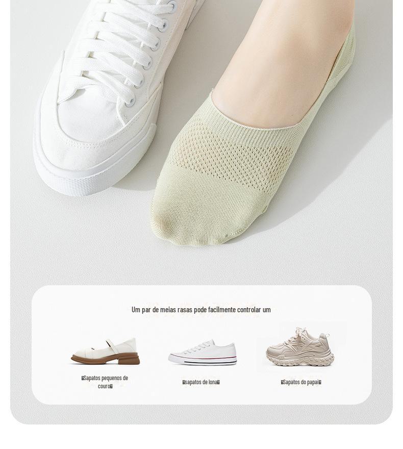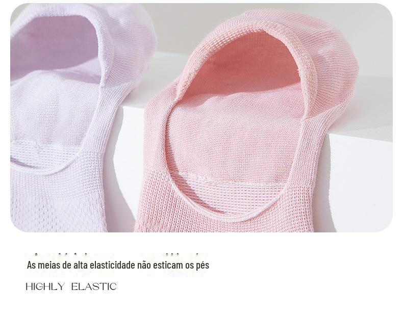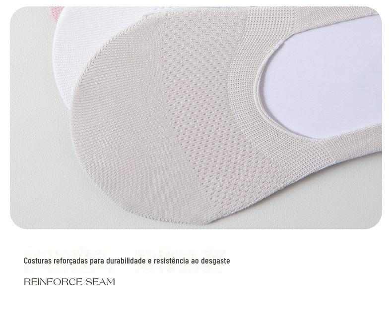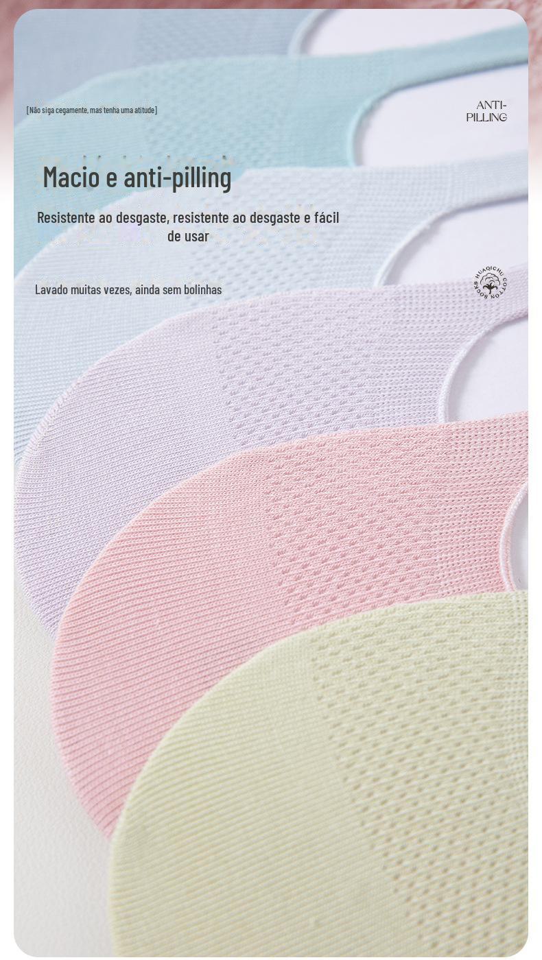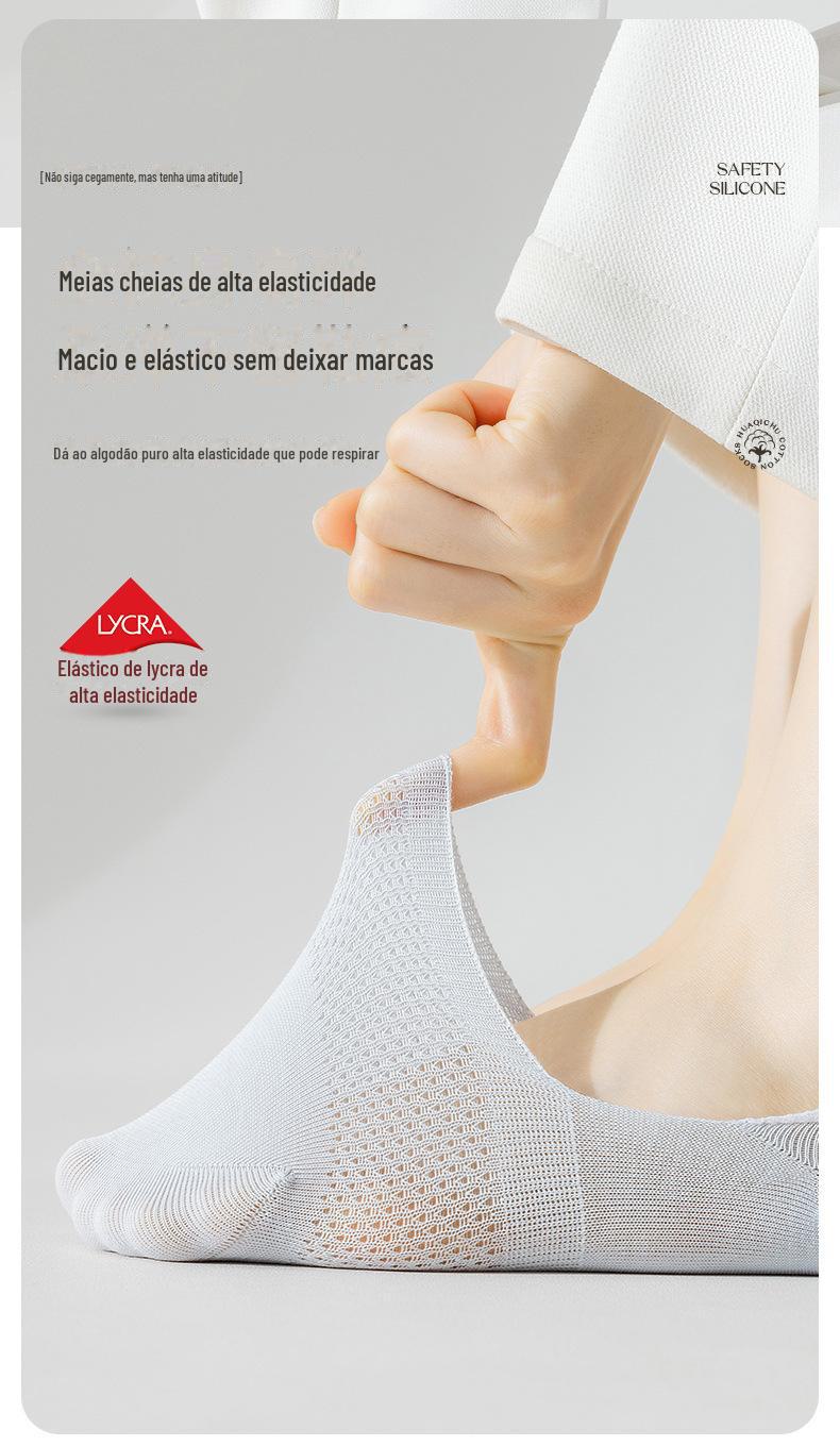 5 Pares de Meias Invisíveis de Barquinho de Silicone Antiderrapantes que Não Caem, Verão Malha Fina Feminina Anti-Pilling, Respiráveis e Não Abafam os Pés