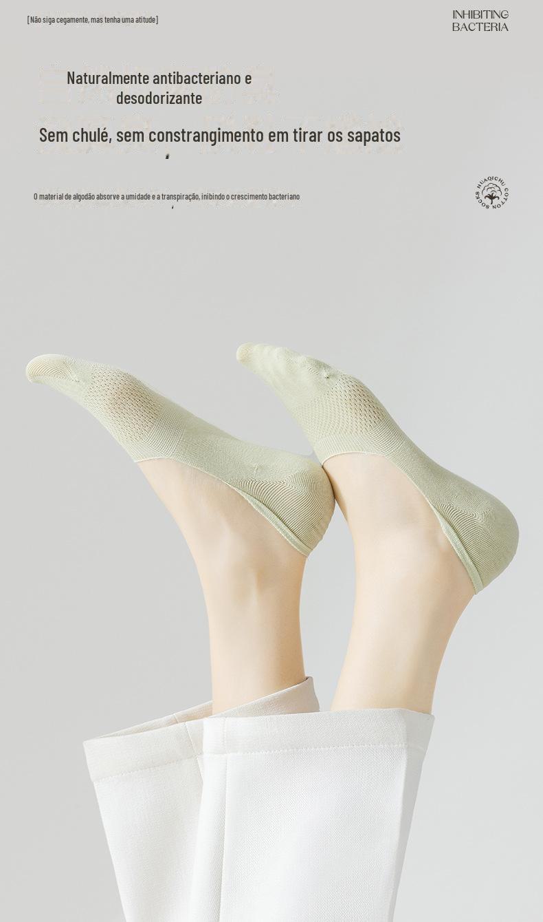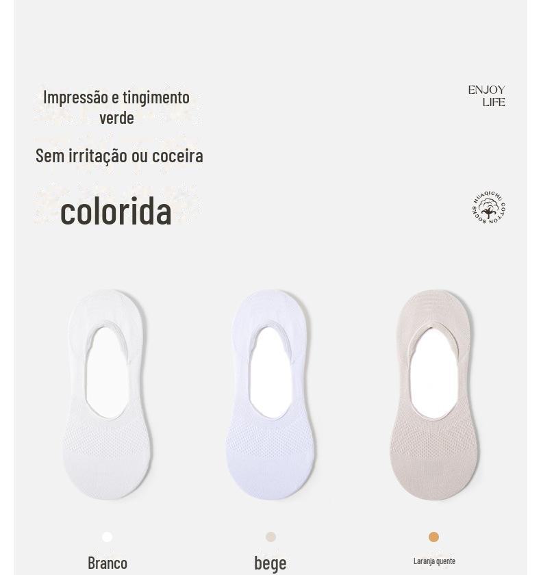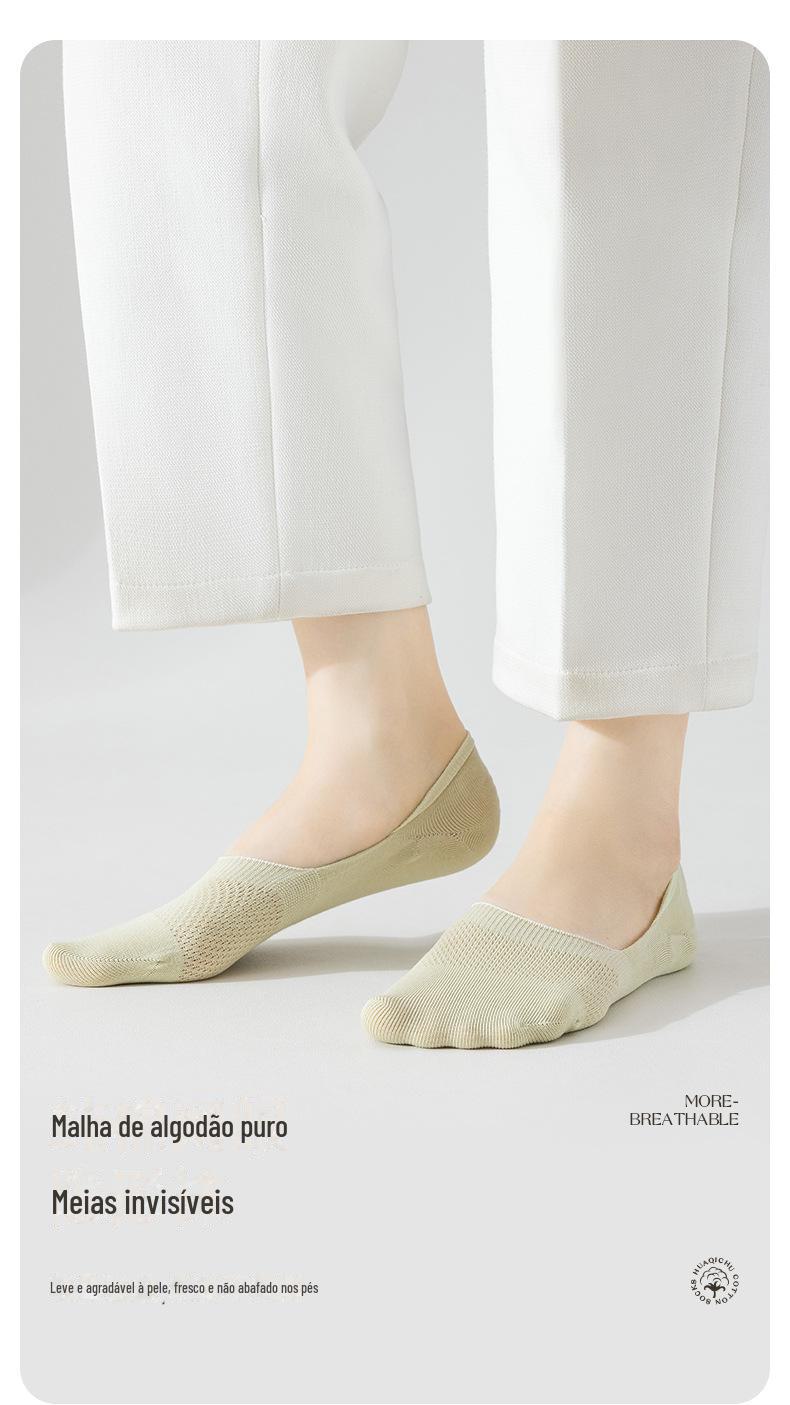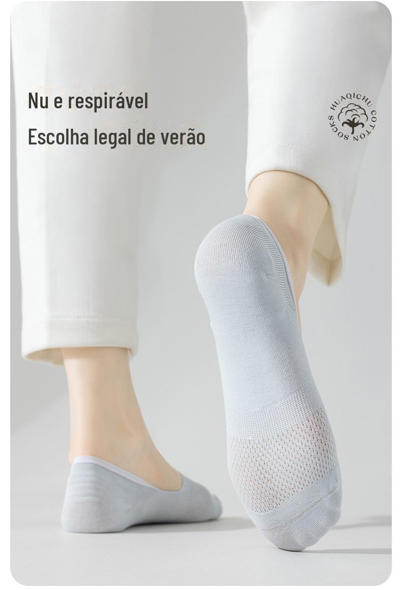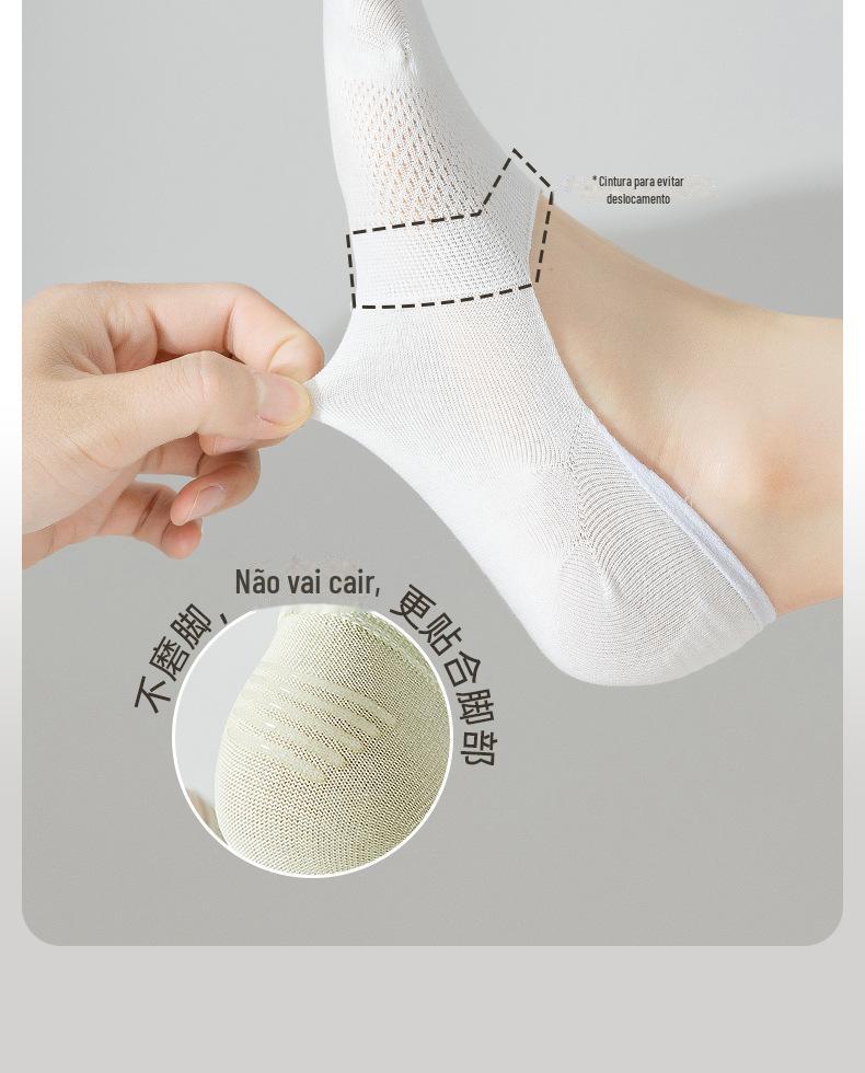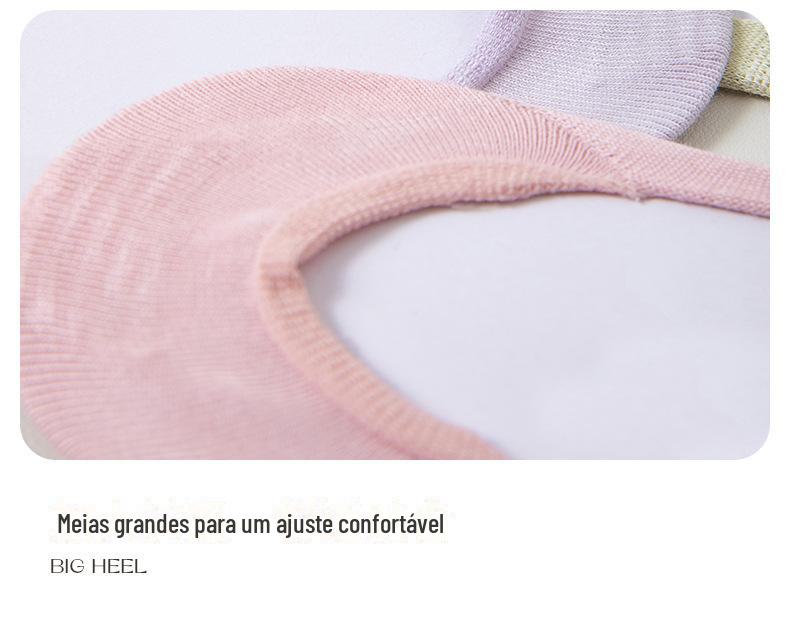 5 Pares de Meias Invisíveis de Barquinho de Silicone Antiderrapantes que Não Caem, Verão Malha Fina Feminina Anti-Pilling, Respiráveis e Não Abafam os Pés