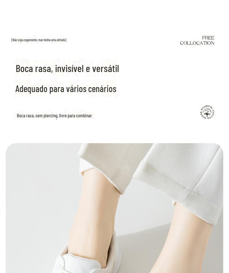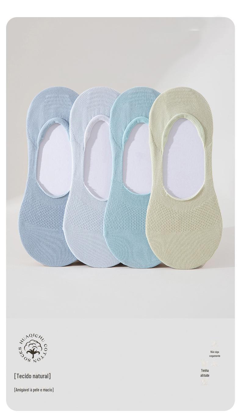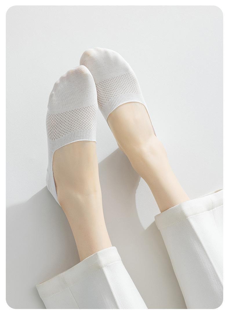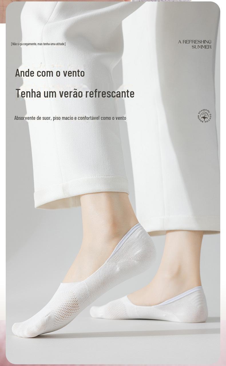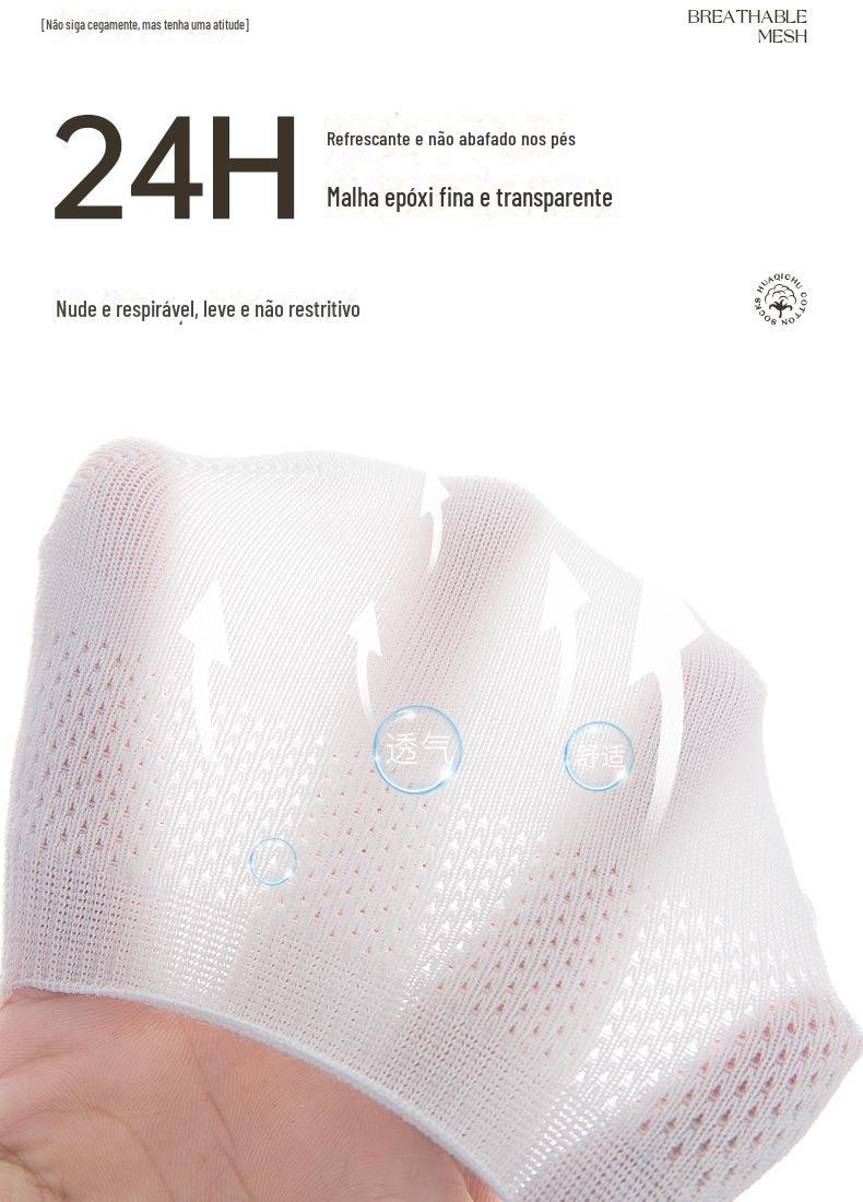 5 Pares de Meias Invisíveis de Barquinho de Silicone Antiderrapantes que Não Caem, Verão Malha Fina Feminina Anti-Pilling, Respiráveis e Não Abafam os Pés