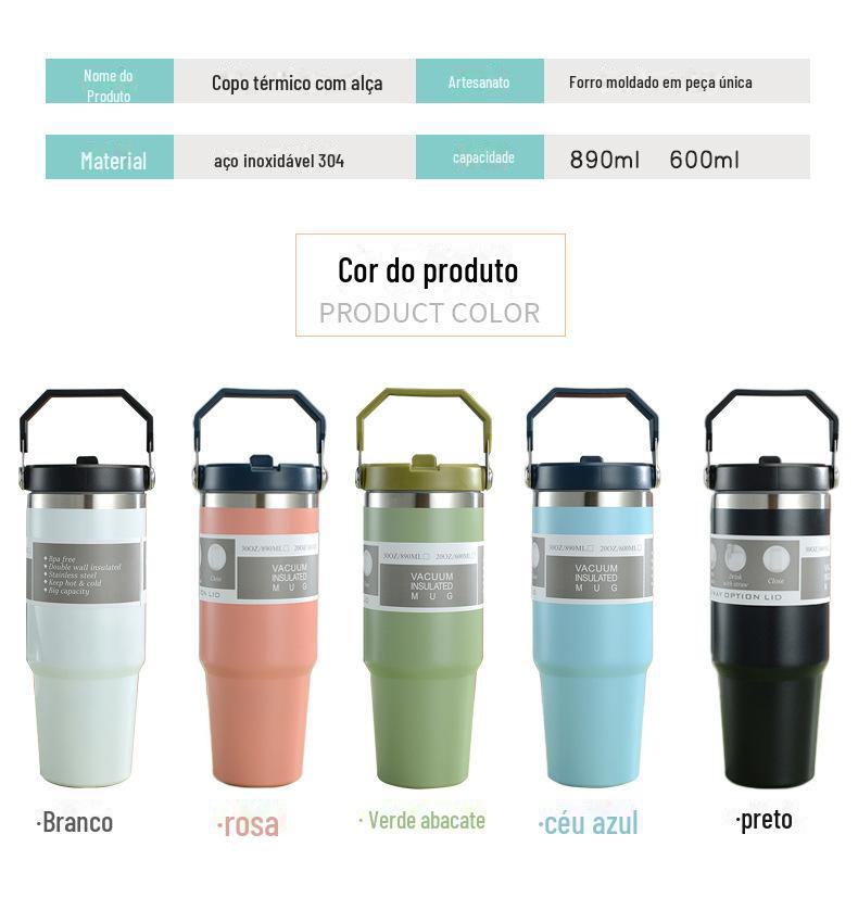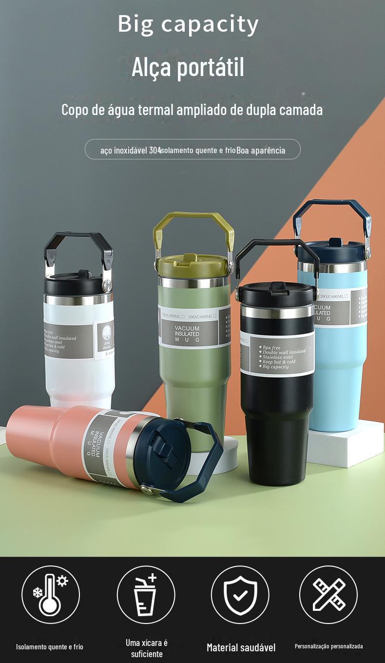 Copo térmico de aço inoxidável com gradiente de cor espessado a vácuo, copo de água de grande capacidade, copo portátil para carro