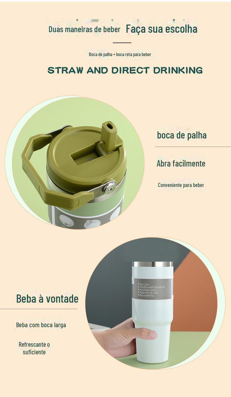 Novo copo de café de alto valor para duas bebidas, copo térmico de aço inoxidável 316, canudo de carro, copo de presente que acompanha o copo de lírio do vale