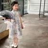 Vestido Cheongsam Chinoiserie Novo para Crianças Yojia Verão 2024 Novo Estilo Estilo Estrangeiro Vestido de Princesa Vestido para Crianças