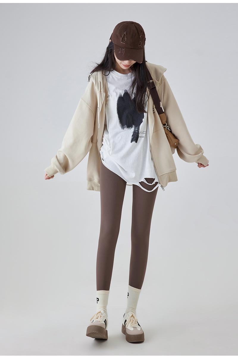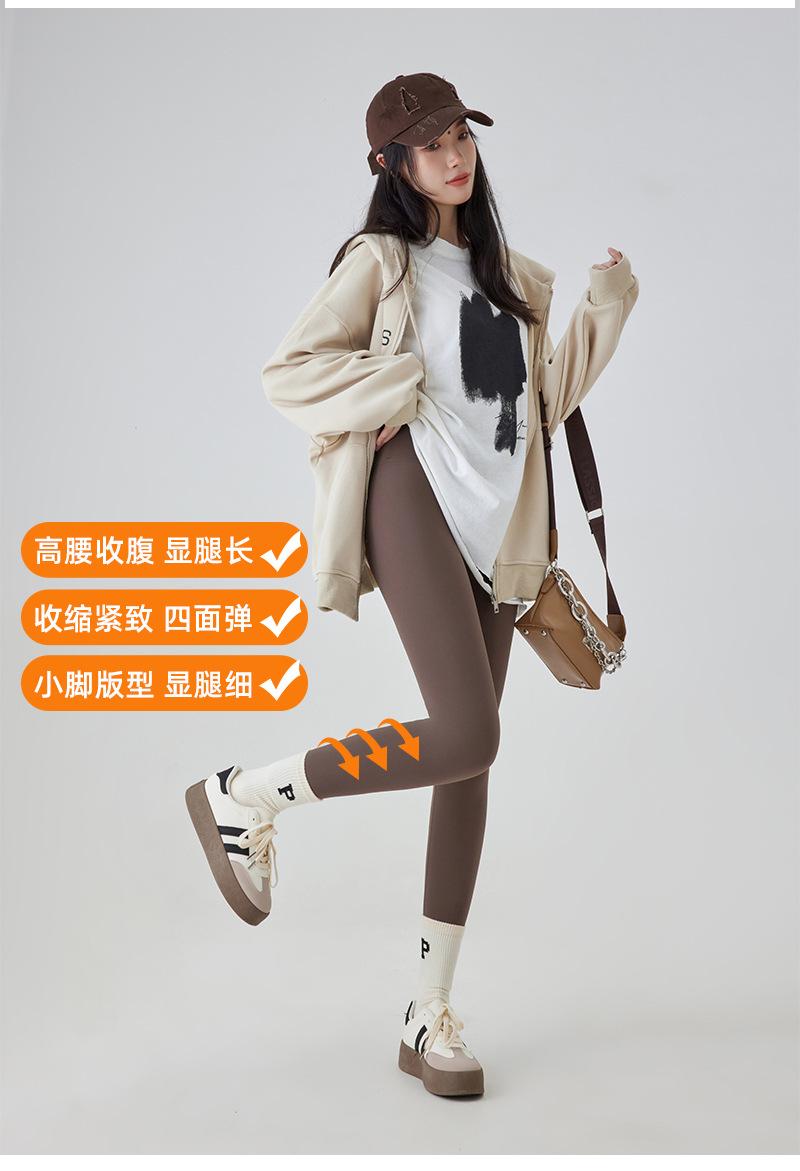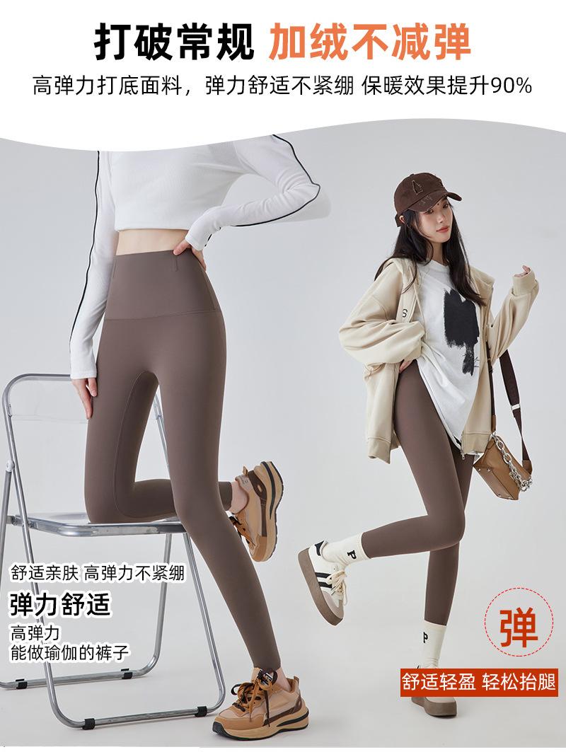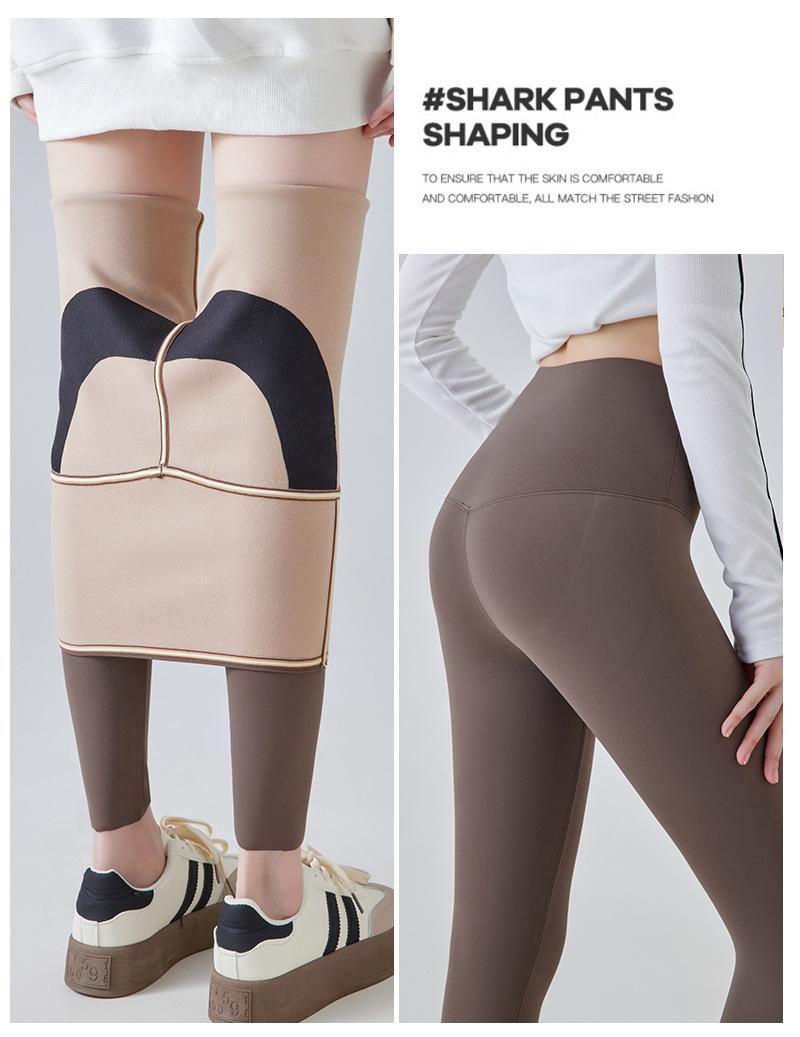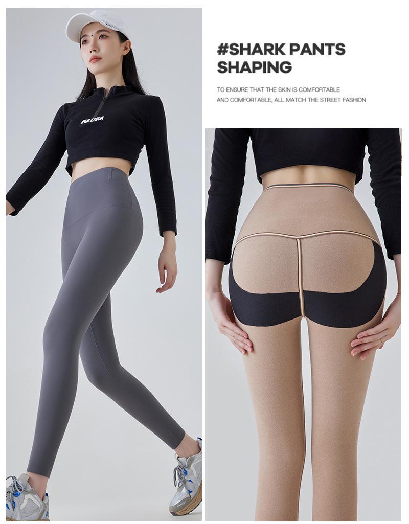 Calças de Yoga Novo Estilo Ajuste Slim Controle da Barriga Outono e Inverno Calças Tubarão Roupa Exterior Feminina 2025 Tamanho Grande Look Emagrecedor Leggings de Veludo Espessas