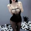 Lingerie sexy uma peça de malha oca preta feminina uniforme tentação sexy alça oca meias de uma peça 8089