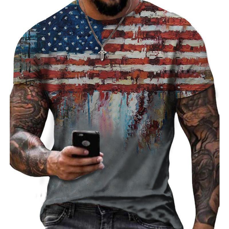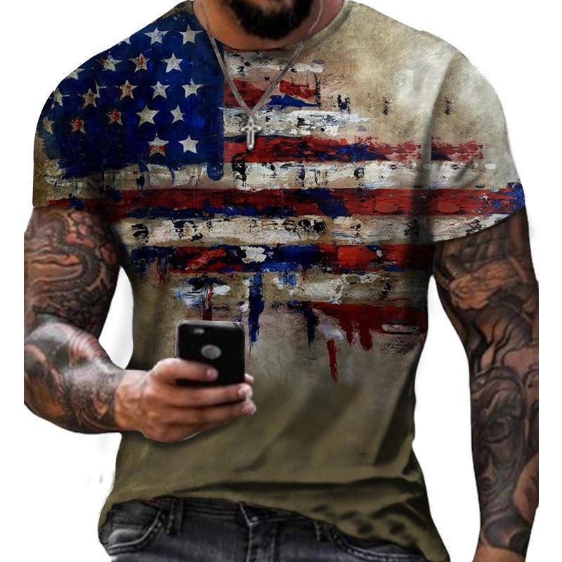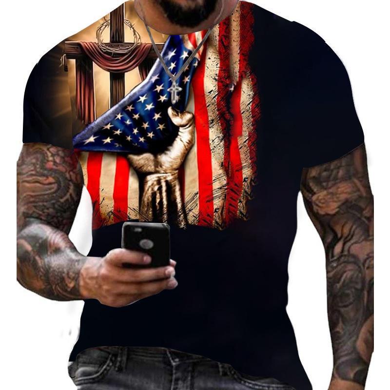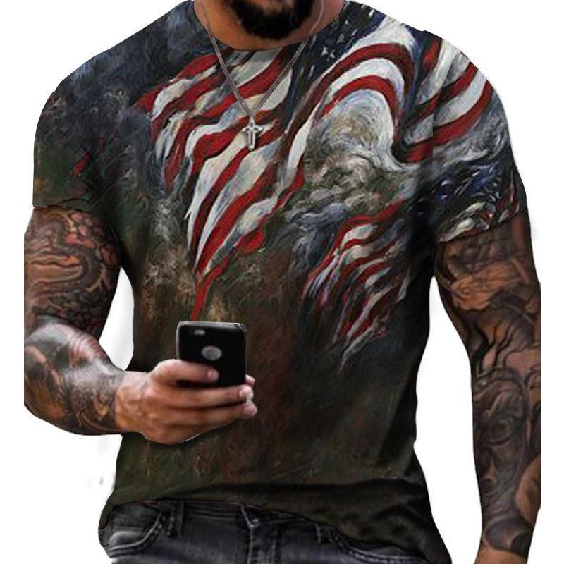 Cross-border 2024 verão novo Dia da Independência dos EUA homens impressão digital 3D equipe de comércio exterior pescoço pullover manga curta T-shirt
