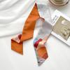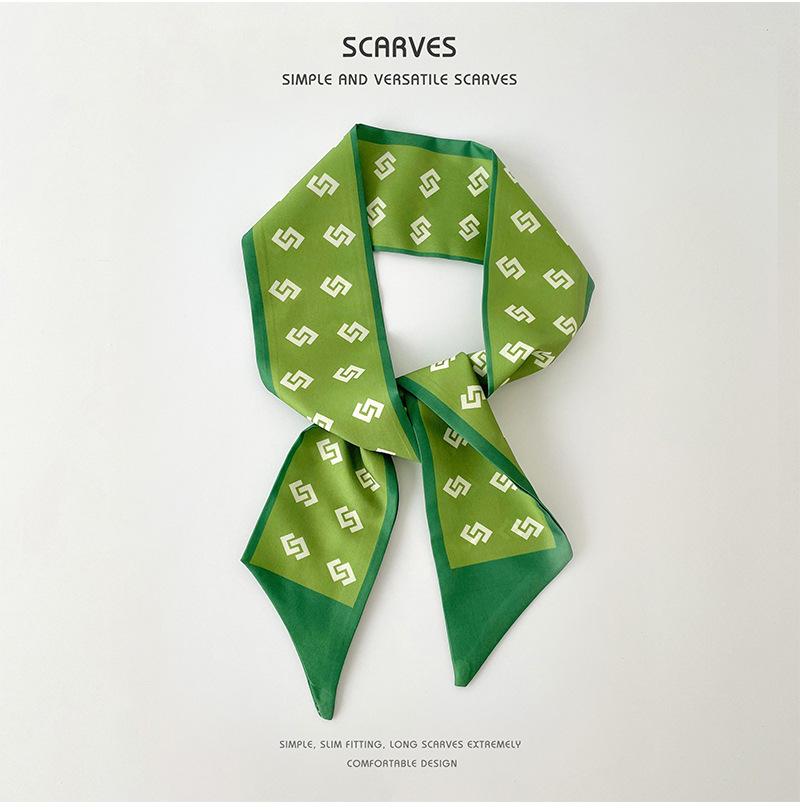 Cachecol Longo de Seda para Mulheres 2025 Novo Estilo Coreano High-End Verde Verão Cachecol de Seda Fino Laço de Cabelo Cachecol de Seda Faixa de Cabelo
