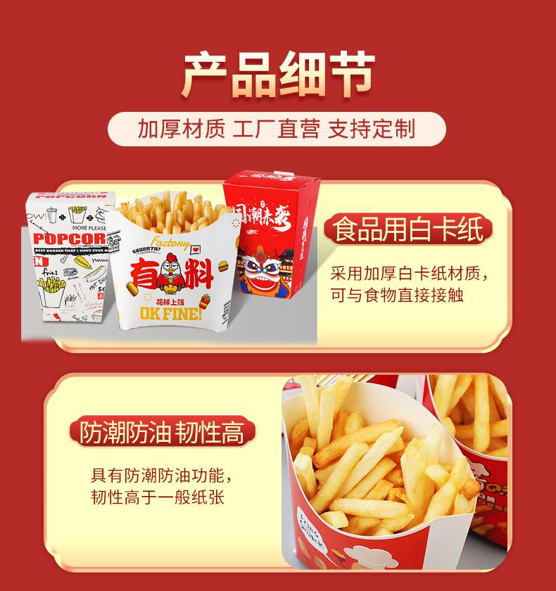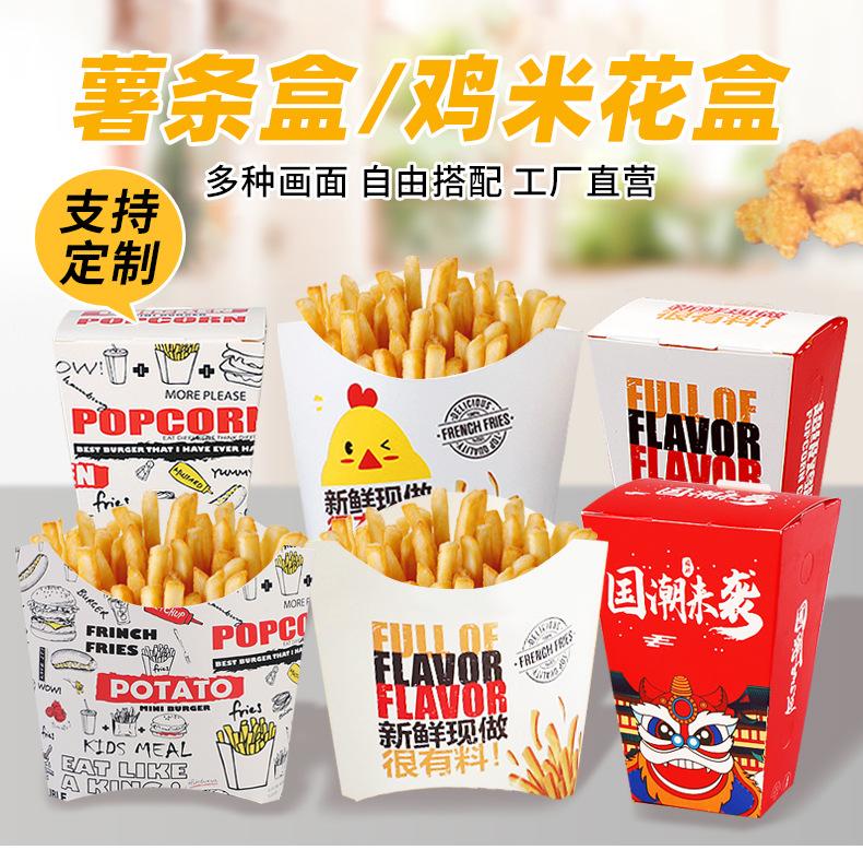 Caixa de batata frita Caixa de flores de frango Caixa de embalagem de coxa de frango espessa descartável sem dobra Fabricação de caixa de embalagem de frango frito para viagem