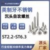 Atacado de Ponto Polegada Dente 304 Aço Inoxidável Parafusos de Cabeça Escareada Cruzada St2.2-St6.3 Parafusos de Aço Inoxidável
