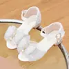 Verão Nova Moda Meninas Sapatos de Couro Princesa Sapatos de Cristal Infantil com Sola Macia para Meninas Mostrar Salto Alto