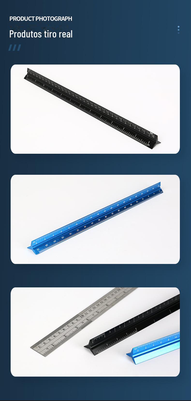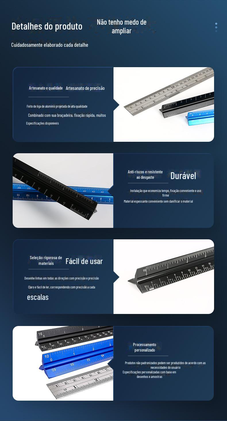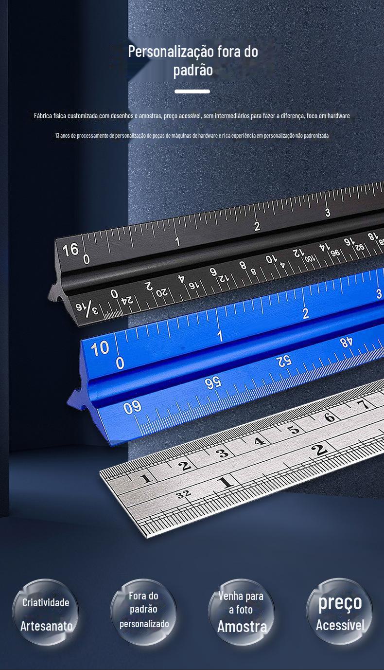 Régua de Escala a Laser Liga de Alumínio Régua Triangular Gabarito para Desenho de Engenharia Régua Triangular Arquitetônica Liga Dura