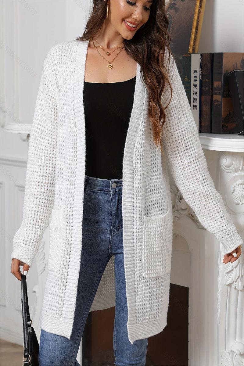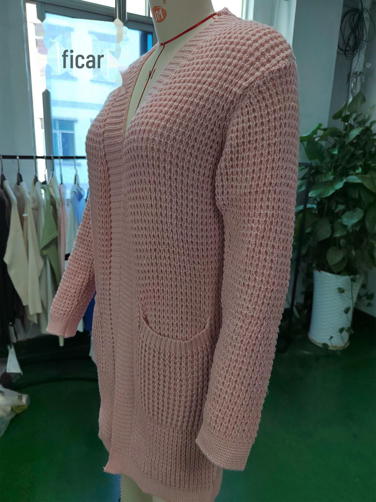 Exportação de Roupas Europeias e Americanas Outono e Inverno Novo Cardigan Tricotado Aliexpress Cardigan Cor Pura Xale Longo Tricot para Mulheres