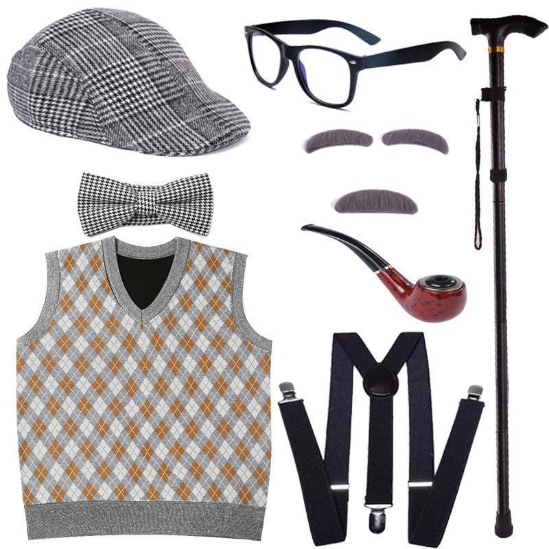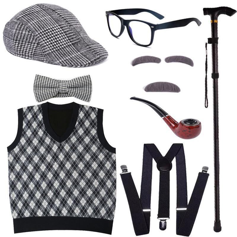 Halloween Feminino Traje de Performance de Palco Feminino para Halloween Vovô Colete Velho Homem Masculino cosplay Vestido Adereços terno