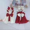 Ins estilo coreano verão das crianças novo vestido da menina grande laço puff manga doce floral vestido de princesa Lotus