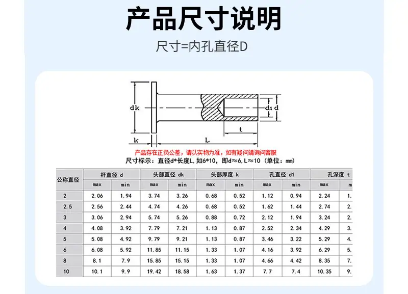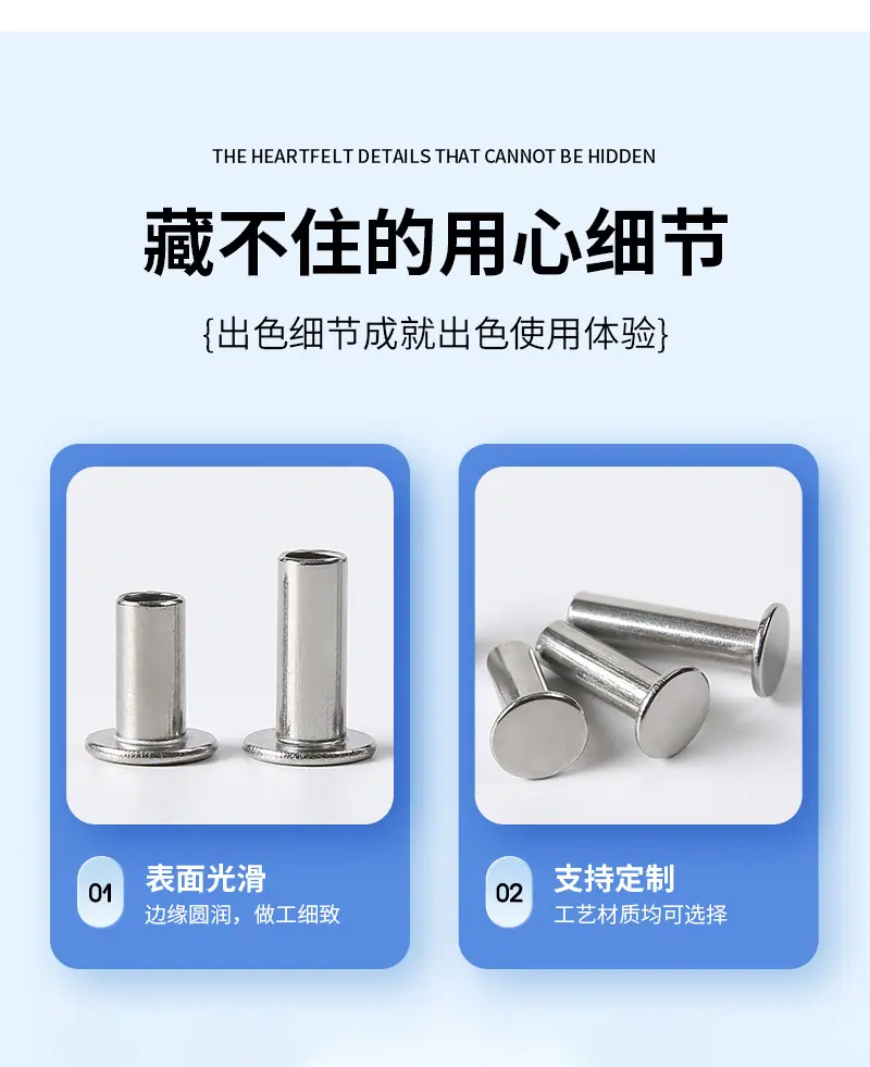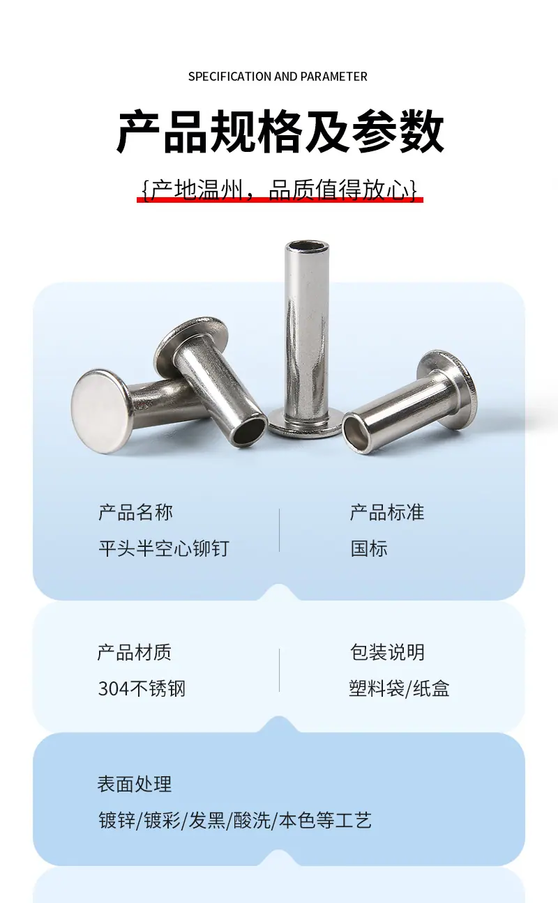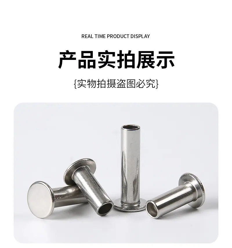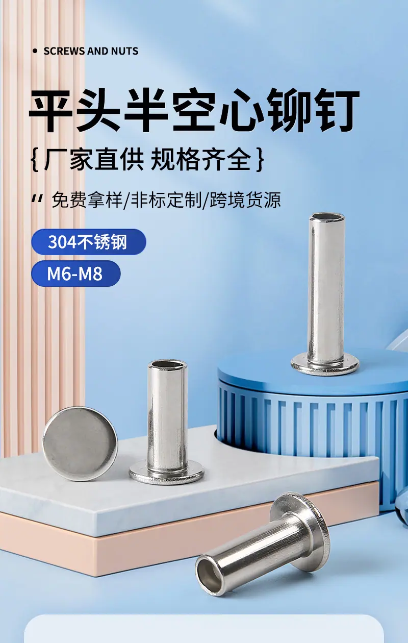 Rebite semi-oco de aço inoxidável 304 cabeça plana rebite semi-oco parafuso oco M6M8 antiferrugem