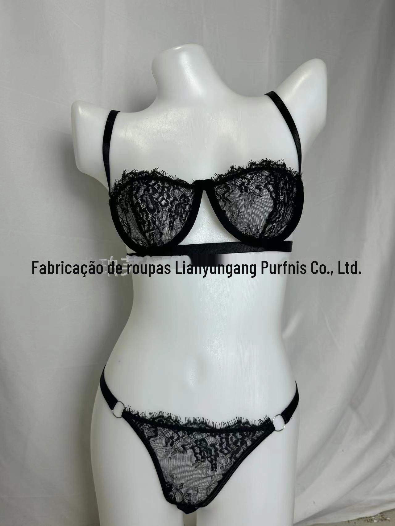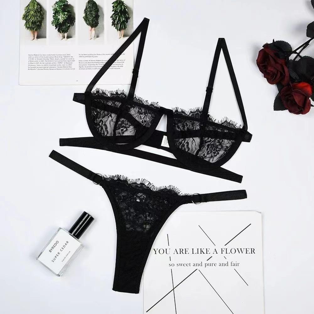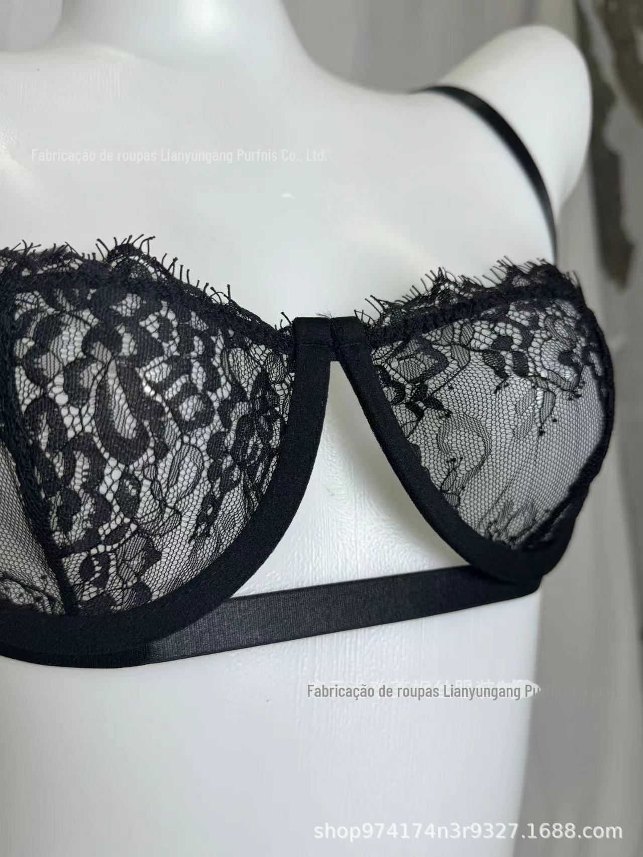 Lingerie Sexy Europeia e Americana Mais Vendida Aro de Aço Renda Lingerie Sexy Transparente Feminina Liga Roupa de Três Pontos