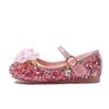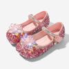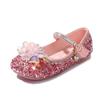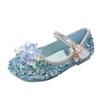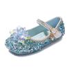 Sapatos de princesa para meninas, novos sapatos baixos de primavera e outono para meninas, sapatos infantis de couro com flores de cristal azul, sapatos femininos para bebês