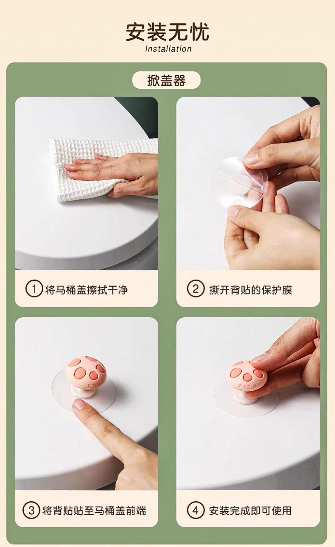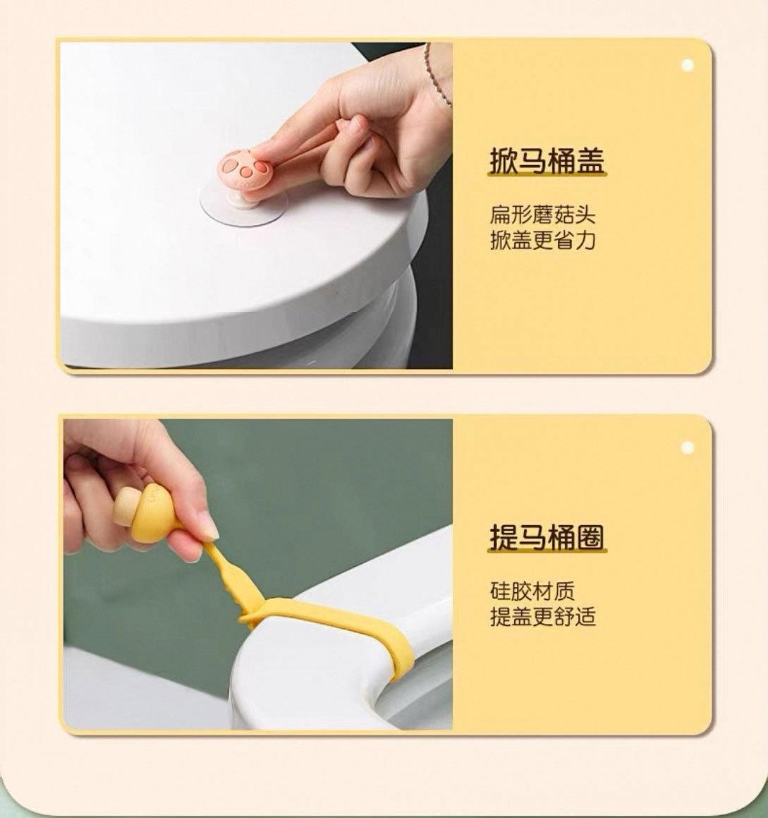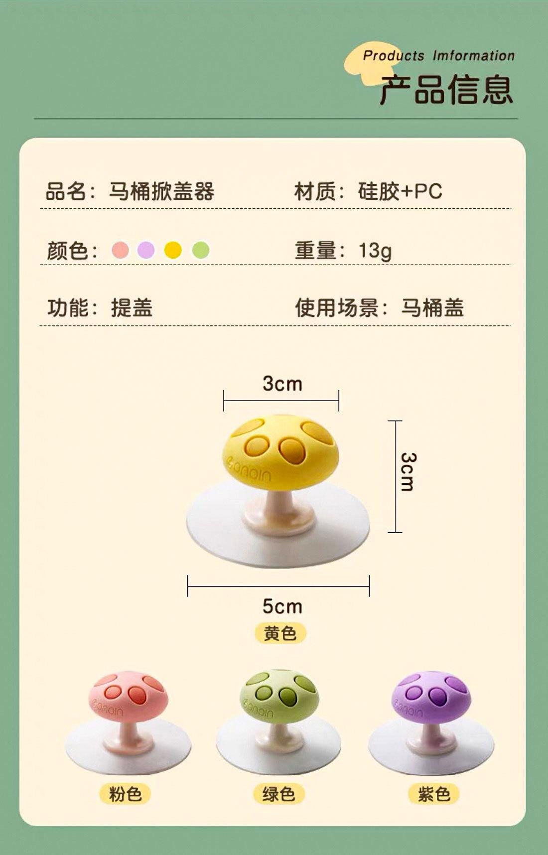 Compre Levantador de Tampa de Vaso Sanitário Cabeça de Cogumelo Fofo Criativo Mais Vendido para Banheiro, Puxador de Vaso Sanitário Universal Que Não Suja as Mãos no atacado no Joom.pro