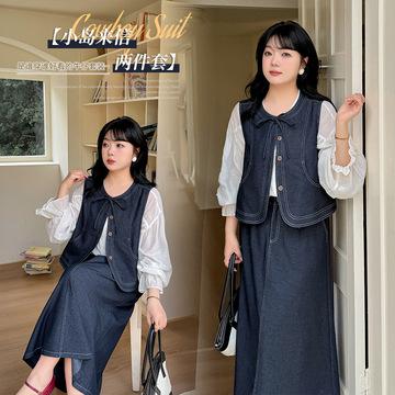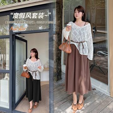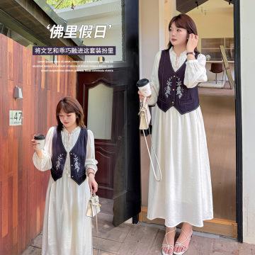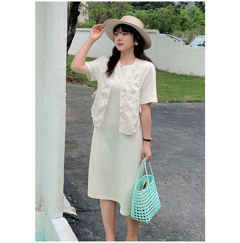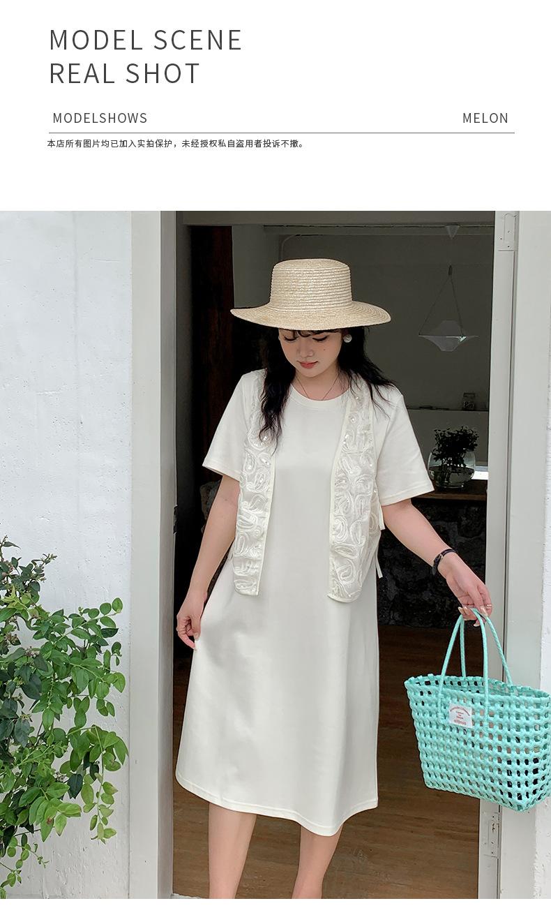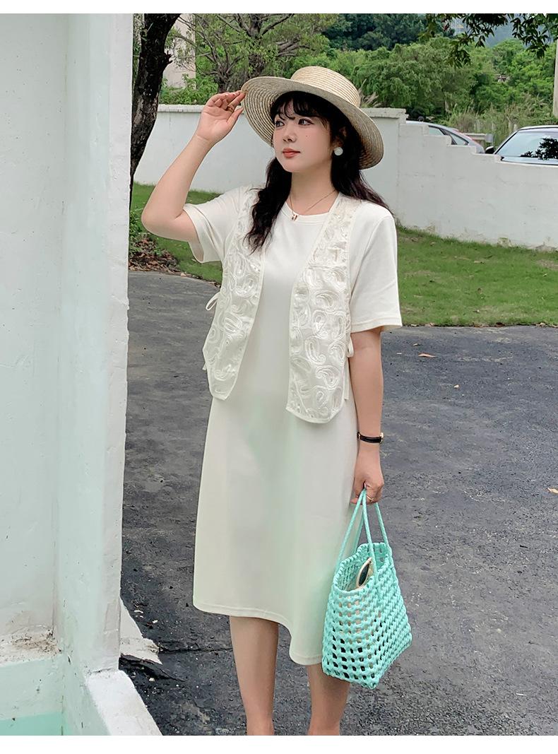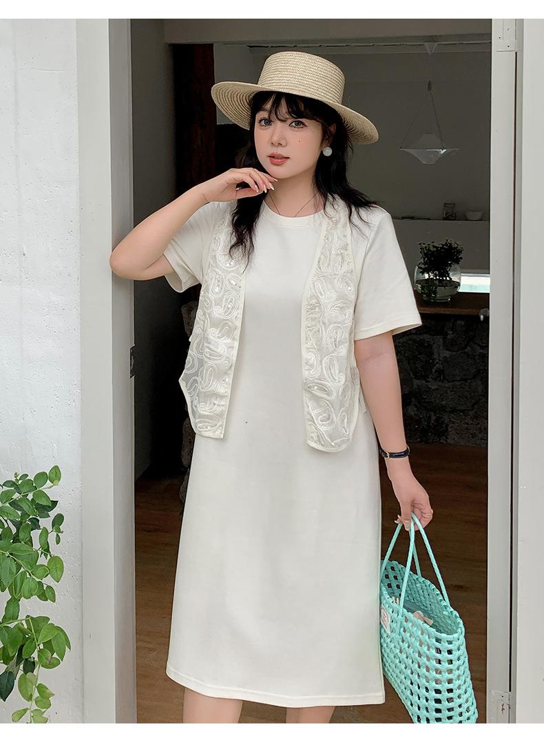 Colete Bordado Indústria Pesada Francesa Vestido Reto Conjunto de Duas Peças Verão Novo Tamanho Grande Aparência Emagrecedora Terno 230356