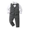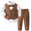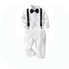 Cross-border meninos 'gentleman vestido Primavera e Outono novo branco de manga comprida calças de camisa terno de cor sólida roupas infantis entrega de uma peça