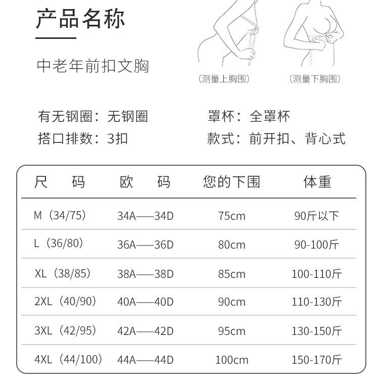 Size M (34/75BC Universal Cup), L code (36/80BC Universal Cup), XL code (38/85BC Universal Cup), 2XL code (40/...
