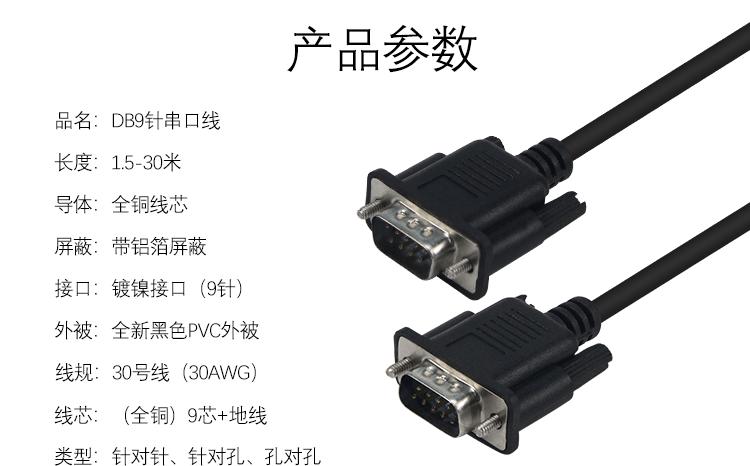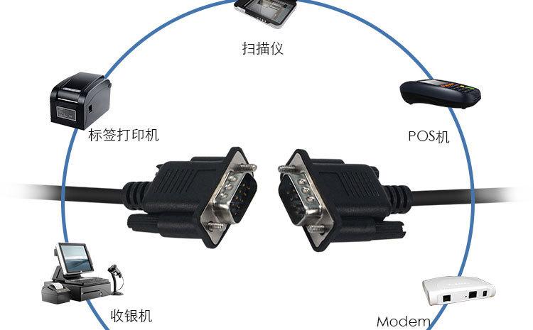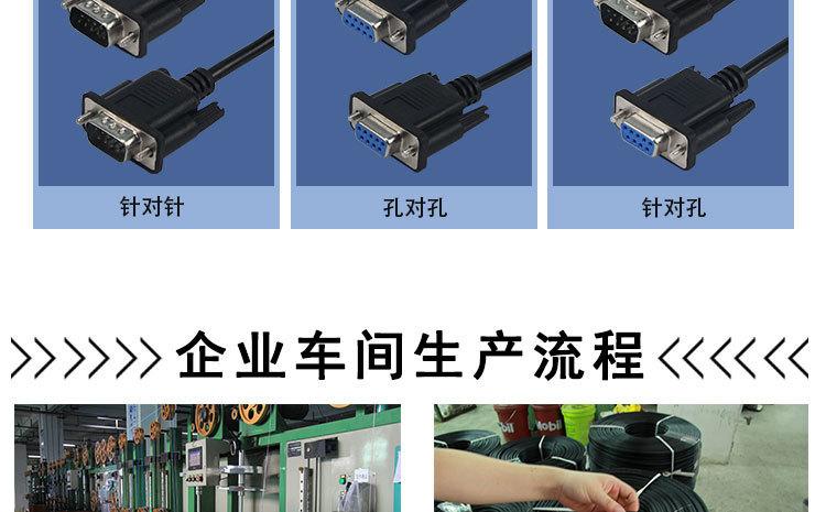 Cabo de Porta Serial de 9 Pinos Personalizado Cabo de Dados Rs232 Db9 Macho e Fêmea Extensão de Conexão Direto Cruzado Preto Cobre Completo