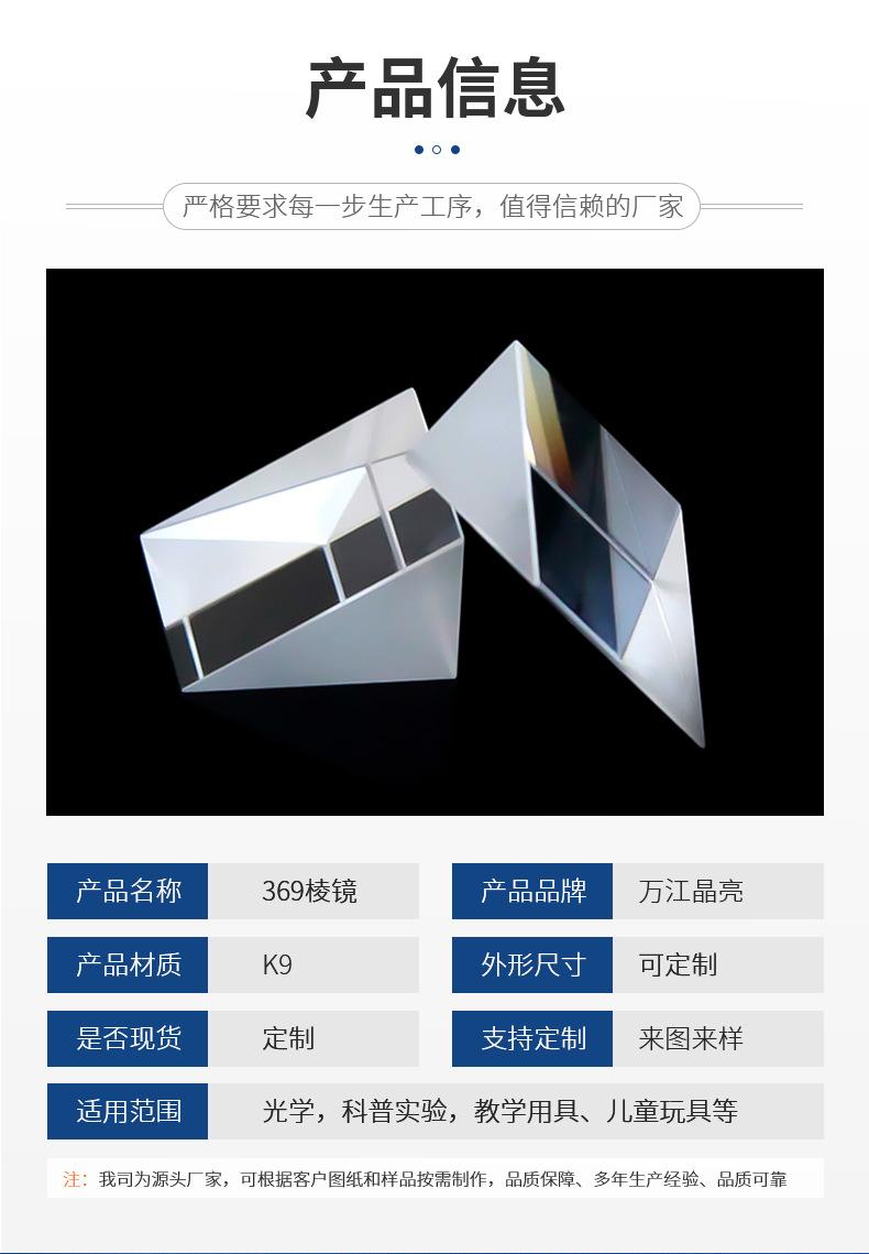 Prisma de vidro óptico K9, prisma de reflexão interna, prisma de reflexão em ângulo reto, prisma 369, prisma equilátero, prisma de reflexão a laser