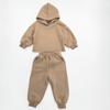 Terno de outono e inverno estilo coreano para meninos e meninas, moda infantil, com capuz e calças, solto, casual, de lã